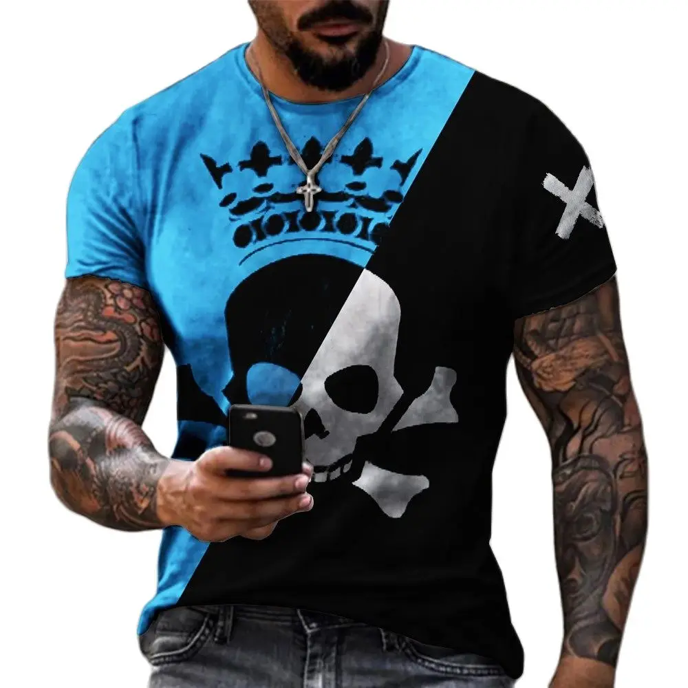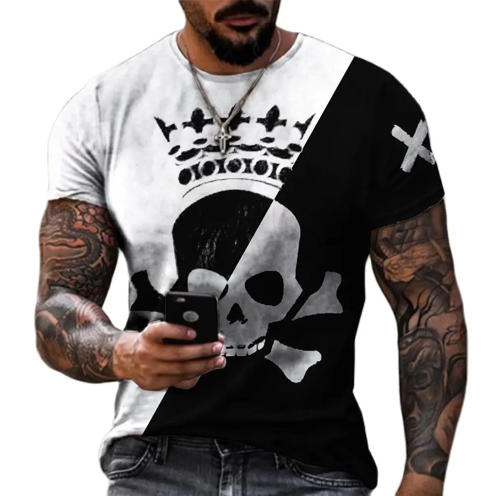 Футболка мужская с 3D-принтом черепа, модная дышащая уличная одежда...
