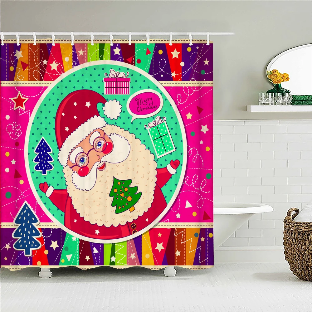Счастливого Рождества ткань занавеска для душа с 12 крючками Забавный Санта-Клаус рождественские занавески для ванной ванная комната украшение водонепроницаемый экран