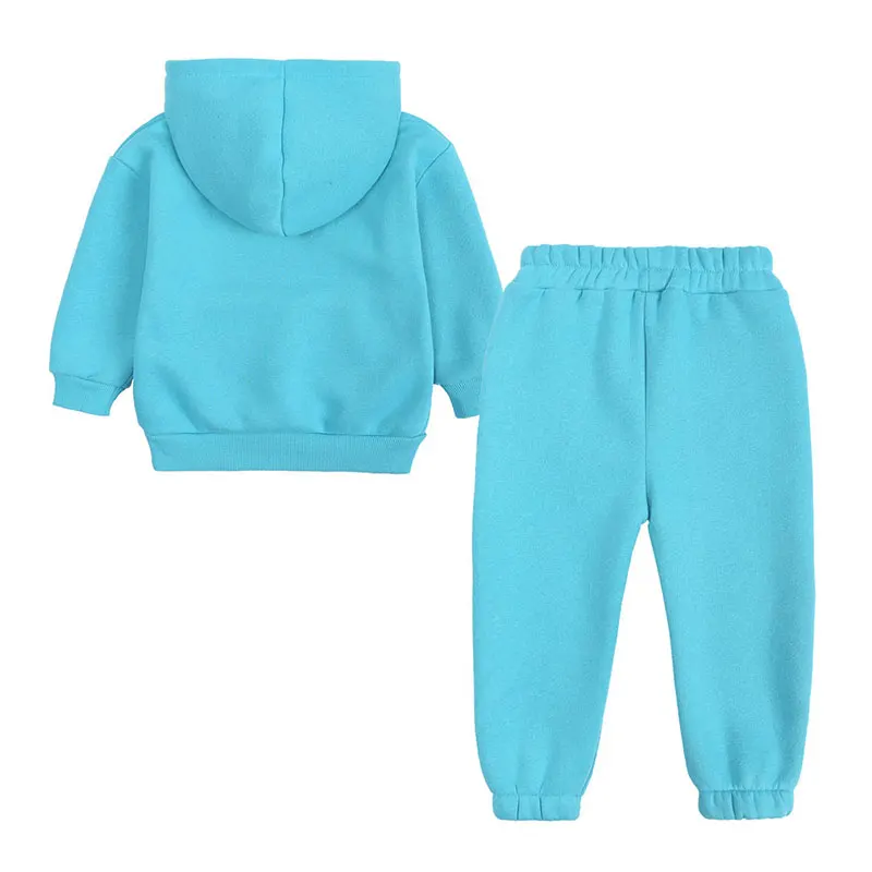 Осенне-зимняя теплая детская одежда, комплекты для девочек, однотонный спортивный костюм для детей, хлопковый топ с капюшоном и длинными рукавами + штаны