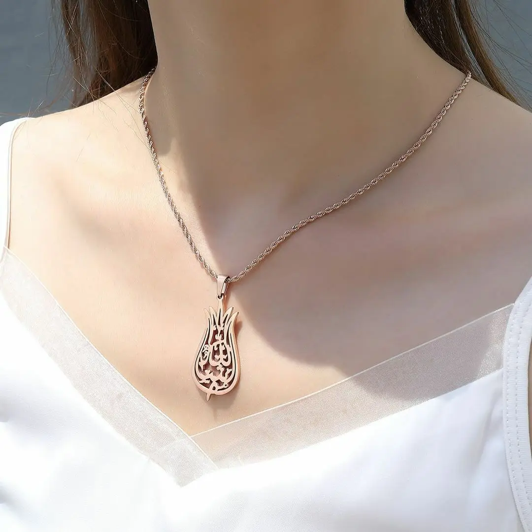 Ожерелье Mashallah-арабская каллиграфия кулон "тюльпан" для женщин ювелирные изделия с гравировкой Arbic ожерелья из нержавеющей стали мусульманский Аллах