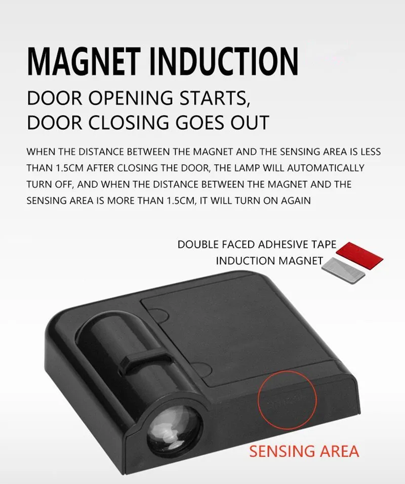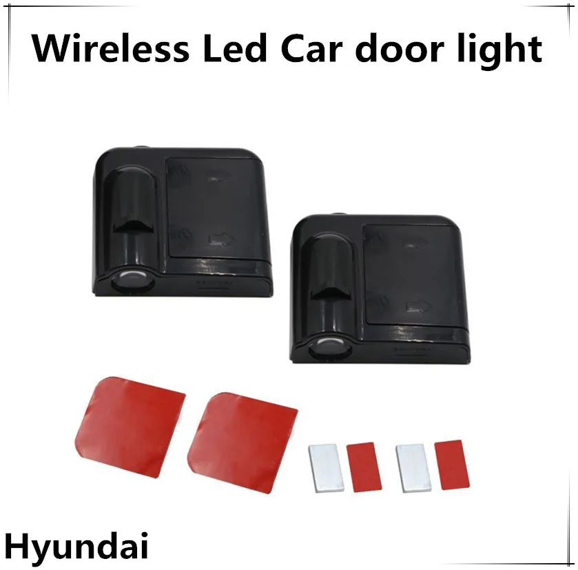 Подходит для: Универсальный для Hyundai автомобиля Особенности: 1. Этот светильник без дрели Ghost Shadow не является беспроводным, он специально разработан для автомодификации fancier, и он не разрушит оригинальный внешний вид автомобиля, что принесет больше удовольствия водителям. 2. Ослепляющий светильник с логотипом и сигнальный светильник будут отображаться на земле, когда вы откроете дверь автомобиля, и он выключится при закрытии двери. 3. Может быть установлен в обоих влево или вправо двери, любезно дверь светильник делает ваш автомобиль художественно. Характеристики: Цвет: черный Материал: АБС-пластик Питание: 3 аккумулятора AAA (не входят в комплект). Установки: Простая установка, не нужно просверливать отверстие, просто приклейте светильник на дверную панель и приклейте магнит в нижней части рамы автомобиля. Никакого вреда для вашего автомобиля Посылка: 2 шт. дверный проектор с логотипом (2 шт. для 2 дверей)