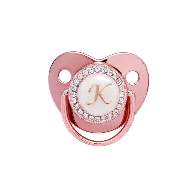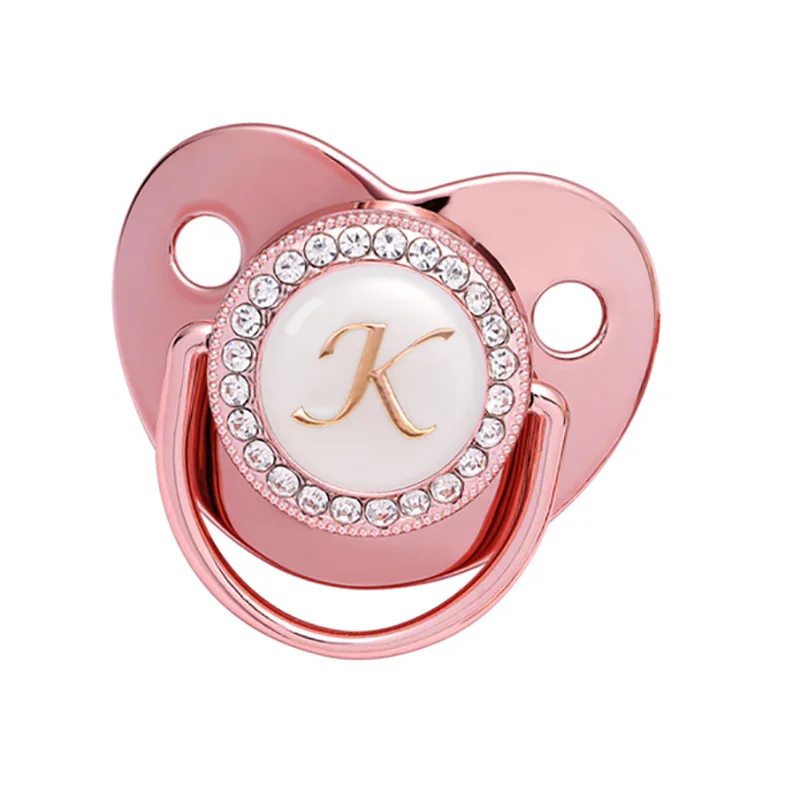 Соска-пустышка с именем и инициалом, для новорожденных девочек и мальчиков, блестящие силиконовые соски цвета розового золота, без бисфенола А, Детская фотография