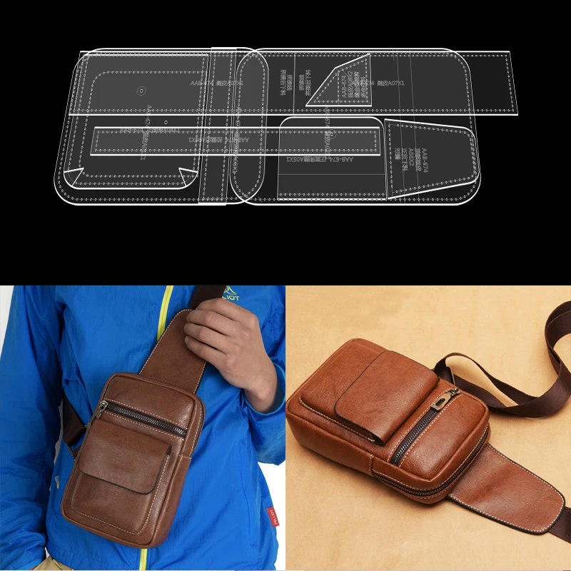 Акриловый трафарет, лазерная резка, сделай сам, кожа, ручная работа, Мужская нагрудная сумка, поясная сумка, швейный узор, 24x14x6 см