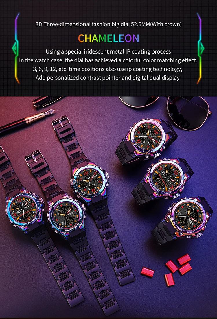 Часы мужские, армейские, водонепроницаемые, с двойным дисплеем, Разноцветные часы