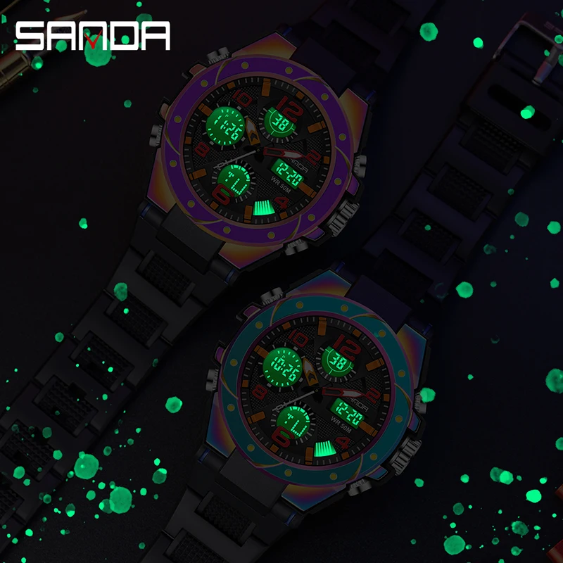 Мужские наручные часы SANDA, водонепроницаемые, с двойным дисплеем