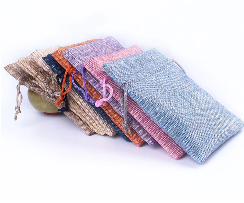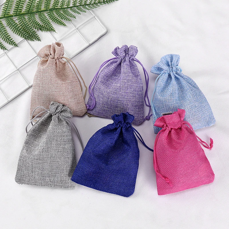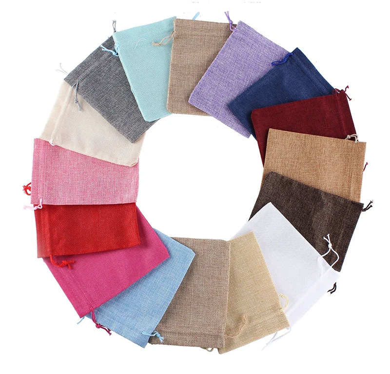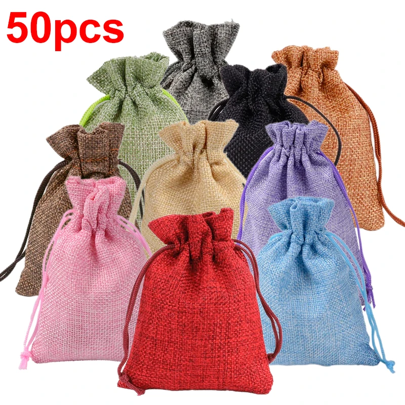 Джутовые мешочки на шнурках из натурального материала, 50 шт.лот, подарочные пакеты разных размеров для ювелирных изделий, свадебные сумки с мешочком для конфет, можно нанести логотип на заказ