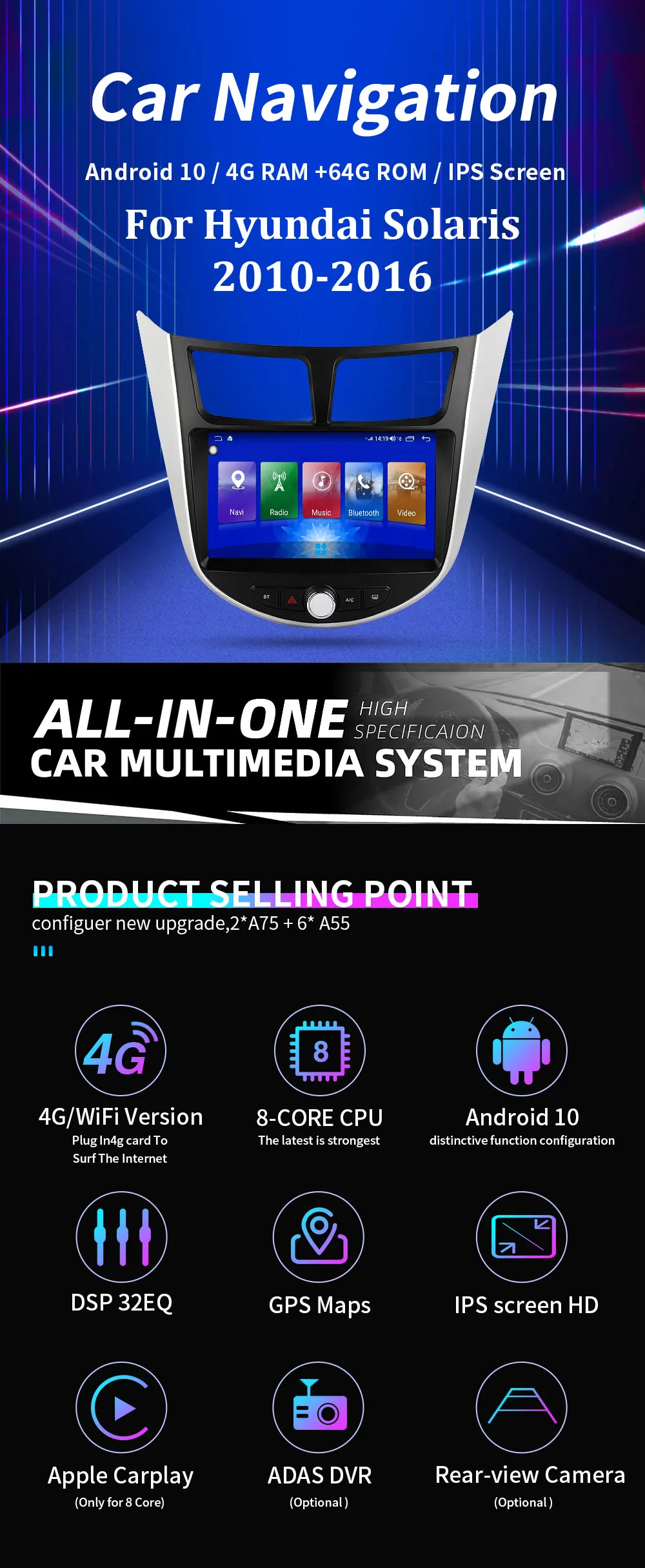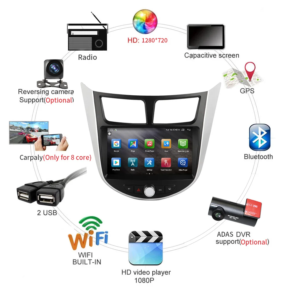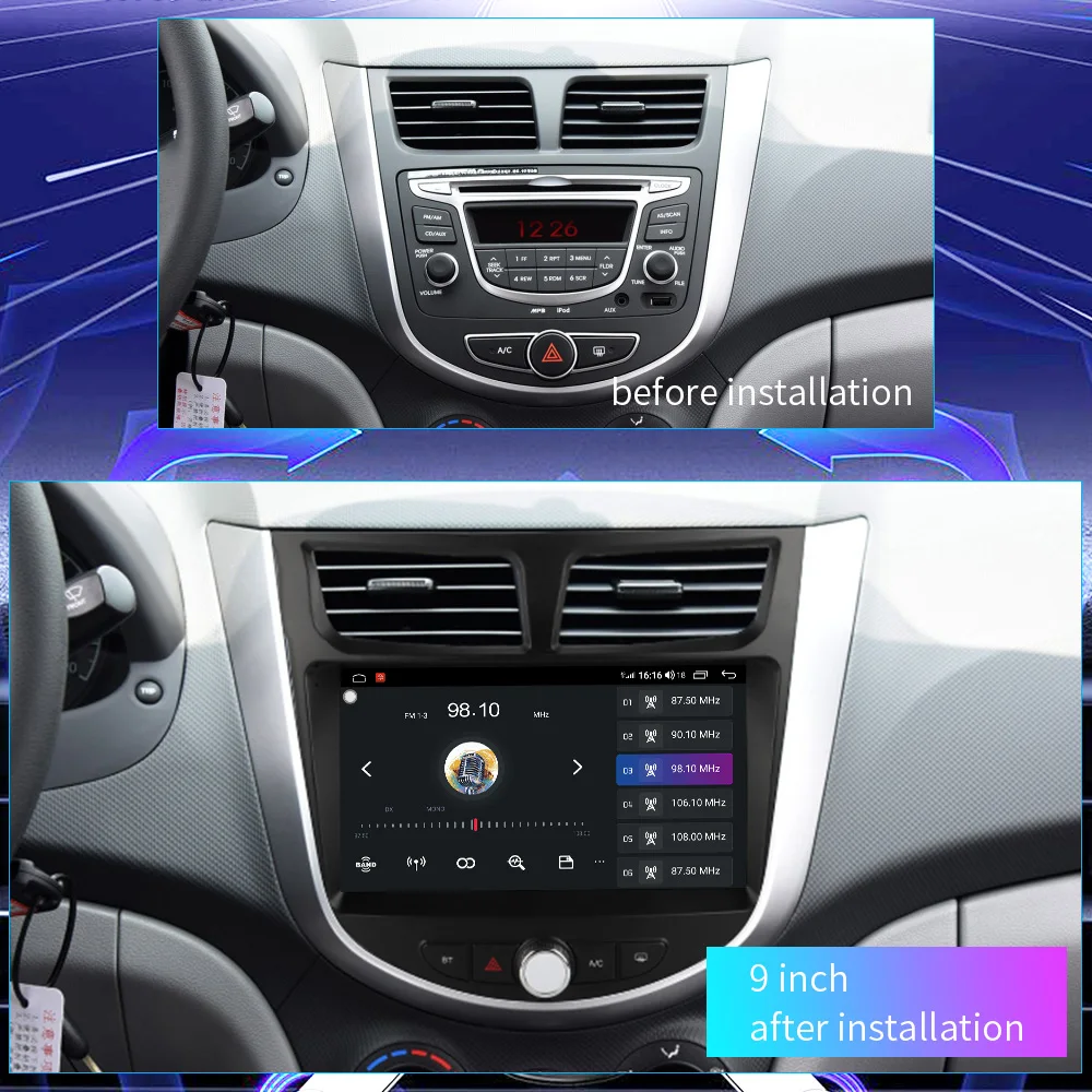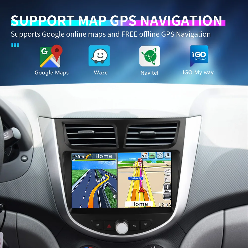 Автомобильный мультимедийный плеер, Android 10,0, 9-дюймовый автомобильный DVD-проигрыватель для Hyundai Solaris, Verna, Accent 2009-2016, GPS, радио, видео навигация