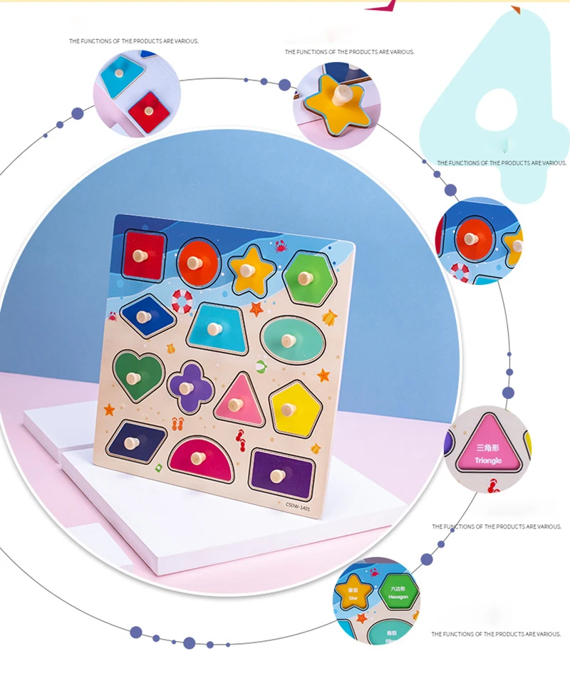 Детские игрушки Монтессори, деревянная геометрическая форма, голово...