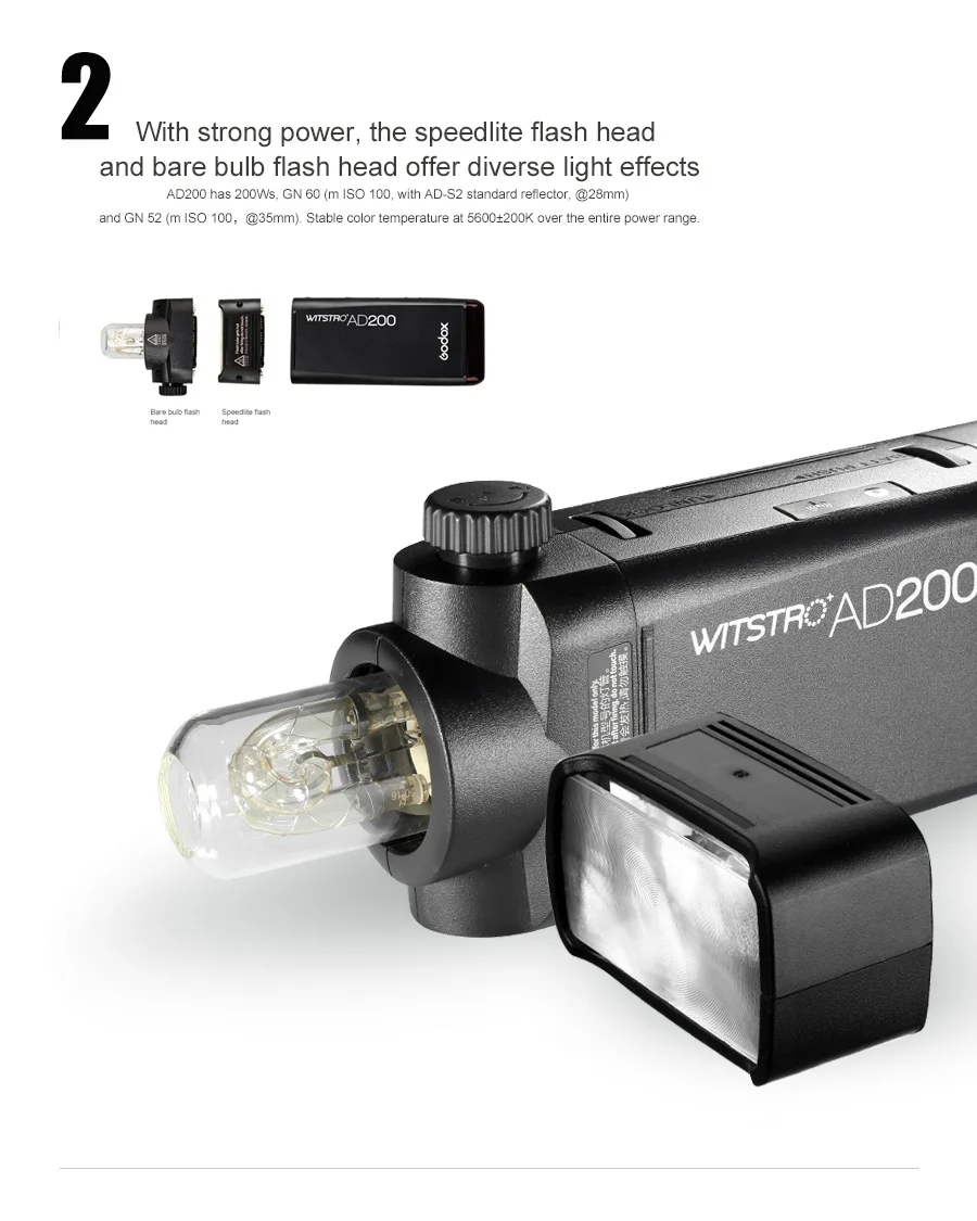 Вспышка-Стробоскоп Godox AD200 200Ws 2,4G TTL 18000 HSS Беспроводная монолампа с литиевой батареей 2900 мАч 500 мощные выстрелы