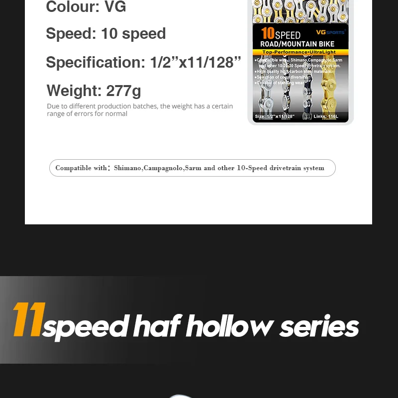 Спортивная велосипедная цепь VG, 8, 9, 10, 11 скоростей, ультралегк...