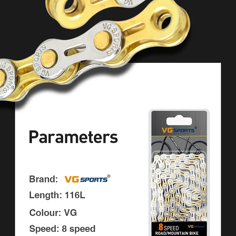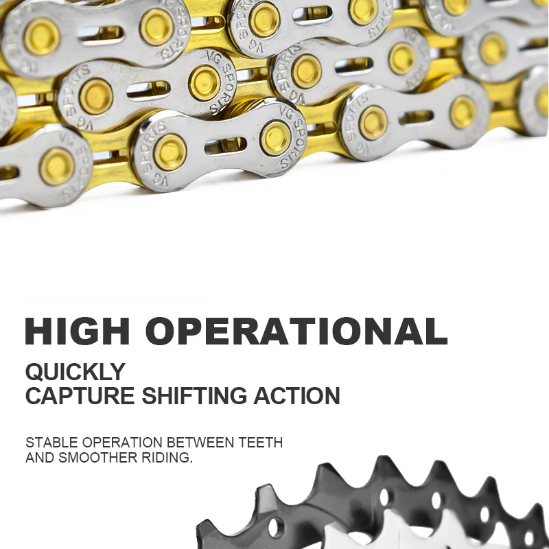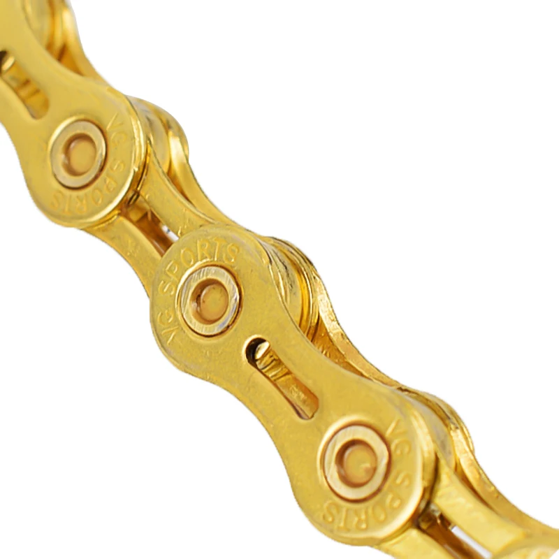 Спортивная велосипедная цепь VG 8 9 10 11 скоростей для горного велосипеда, ЗолотаяСеребрянаяРадужнаятитановая половинчатая цепь для горного велосипеда, цепи для горного велосипеда, часть 116 звеньев
