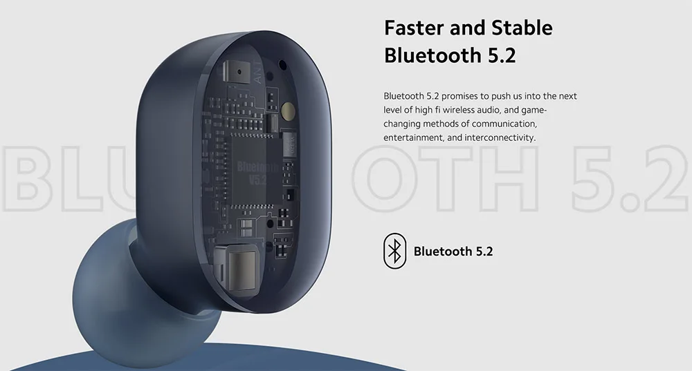 Redmi AirDots 3 использует технологию Bluetooth 5,2 для уменьшения задержки и более быстрого подключения. Bluetooth 5,2 обещает подтолкнуть нас к следующему уровню беспроводного аудио высокого качества, а также к способам изменения в играх общения, развлечений и подключения.