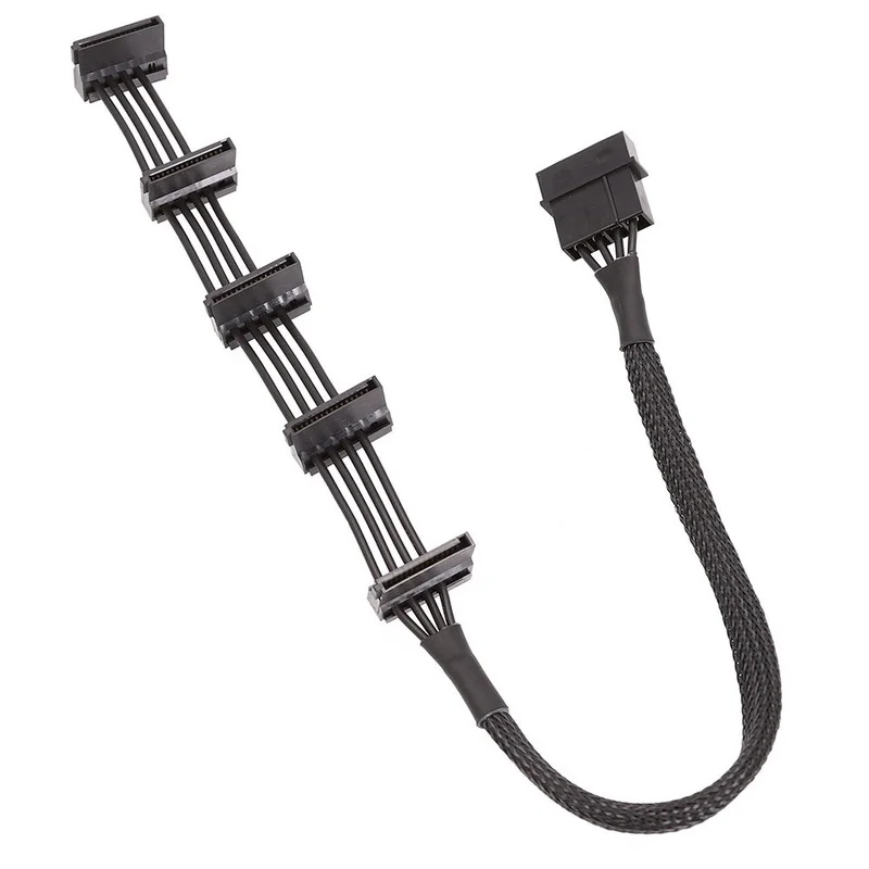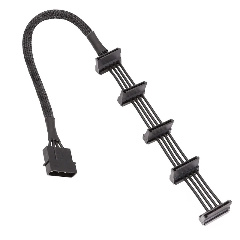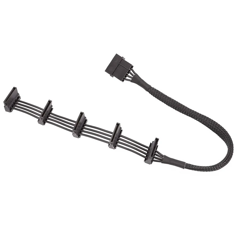 Функция продукта: Подключите большой 4P разъем источника питания, передайте жесткий диск SATA, Расширьте еще 5 портов SATA, И может подключать устройства с несколькими портами SATA для решения проблемы недостаточности портов SATA или управления кабелем и проводки. Внешняя часть ниток обмотана тканой сеткой, что делает внешний вид более красивым и аккуратным.