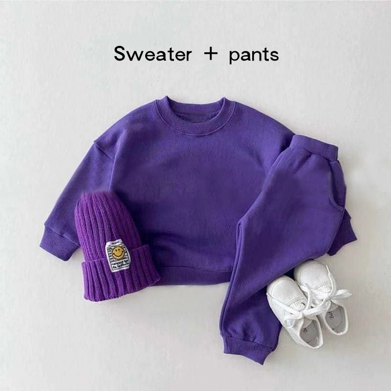 Детский хлопковый костюм с капюшоном, однотонный, для осени и зимы, спортивный костюм для отдыха, От 2 до 12 лет