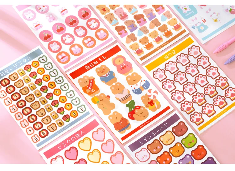 Dimi 8 симпатичных стилей в виде медведя, красочная бумажная наклей...