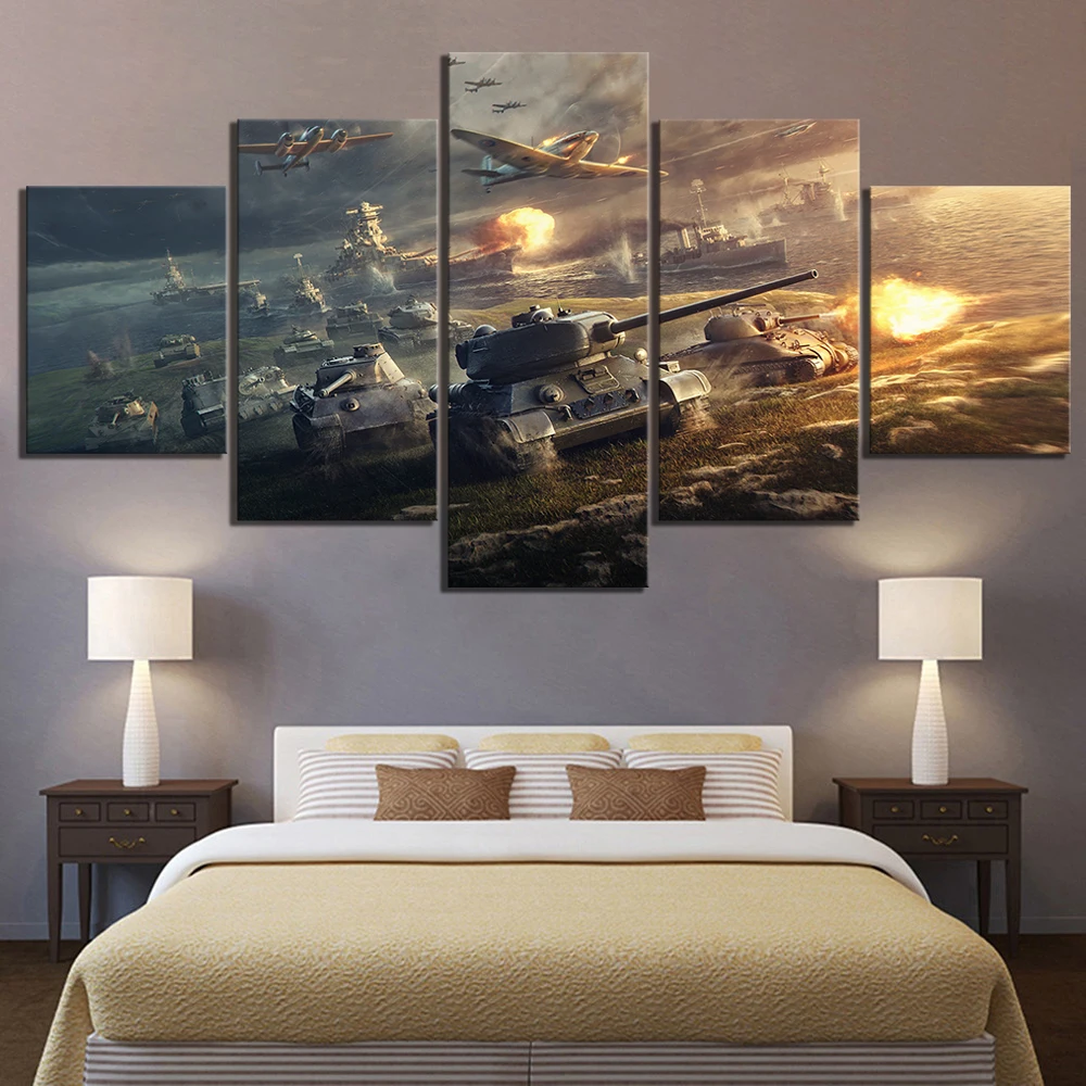 HKDV домашний декор холст картины настенный художественный 5 панелей Мир танков картины для игр печать плакат модульный для гостиной