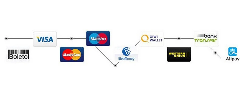 В настоящее время вы можете оплатить с помощью Boleto, Visa, MasterCard, QlWl, Western Union, дебетовой карты Maestro, WebMoney,Paypal и банковского перевода. В дальнейшем будут доступны другие варианты оплаты на Aliexpress.