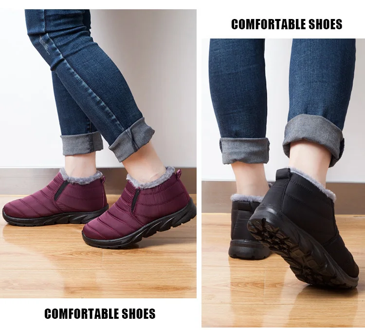 Ботинки женские зимние, теплые, черные, водонепроницаемые, 2021