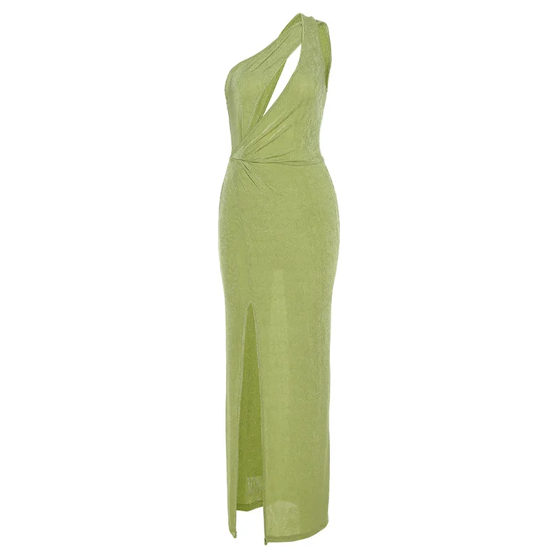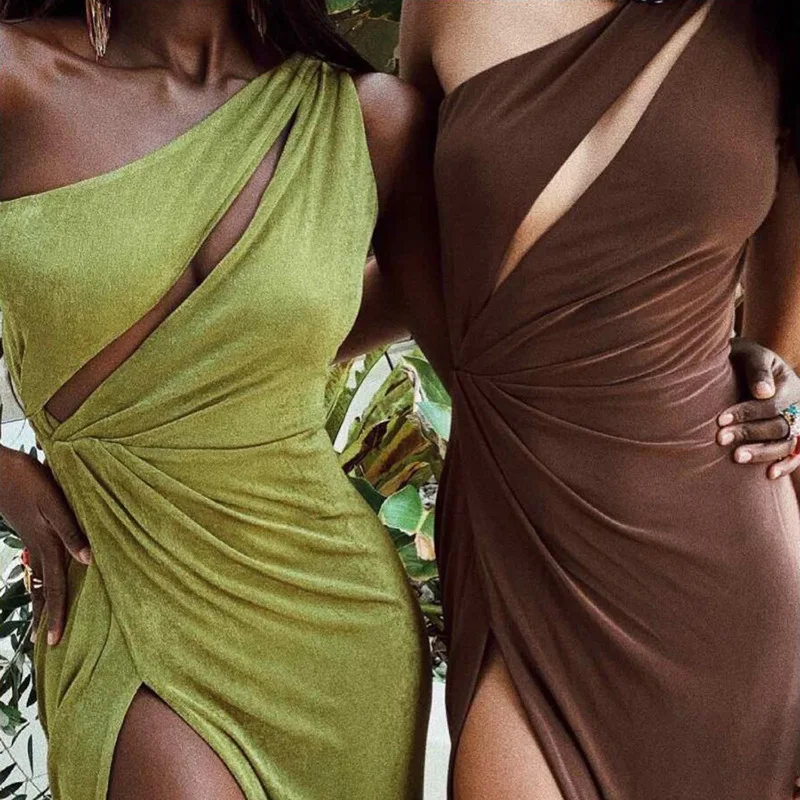 Осень 2021, женское модное однотонное привлекательное облегающее платье с открытой спиной и разрезом, Новинка