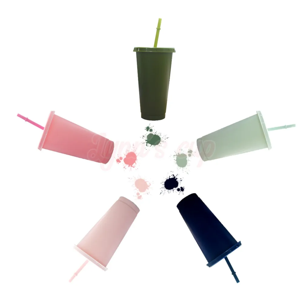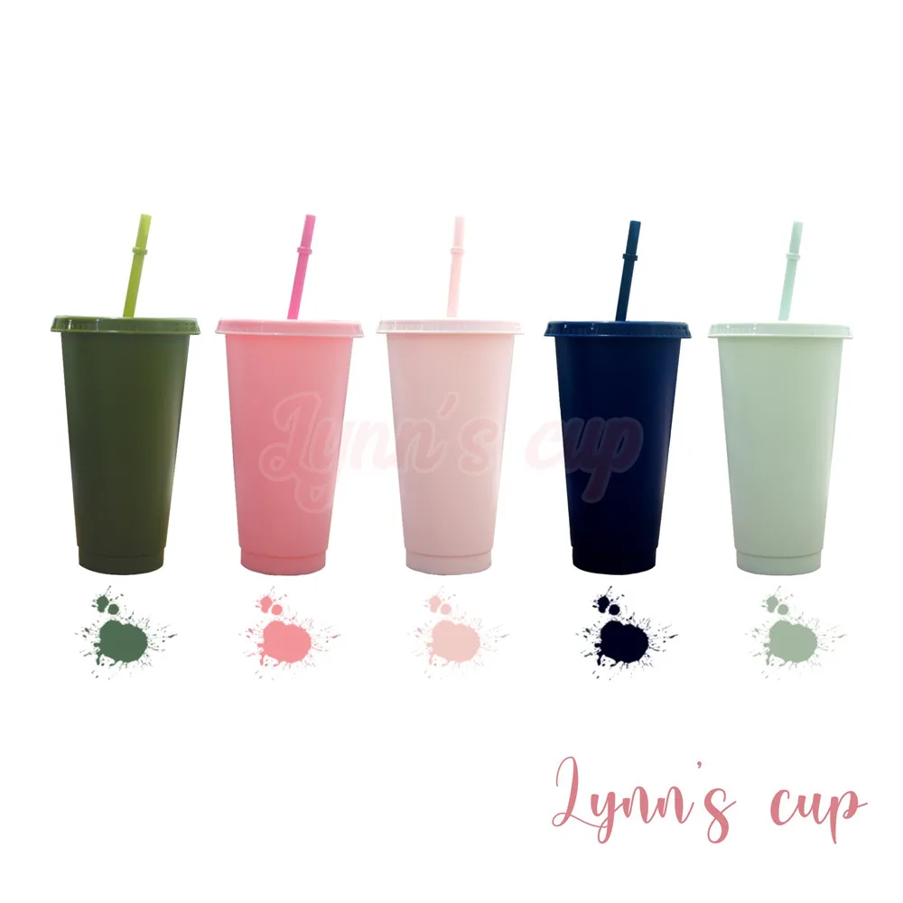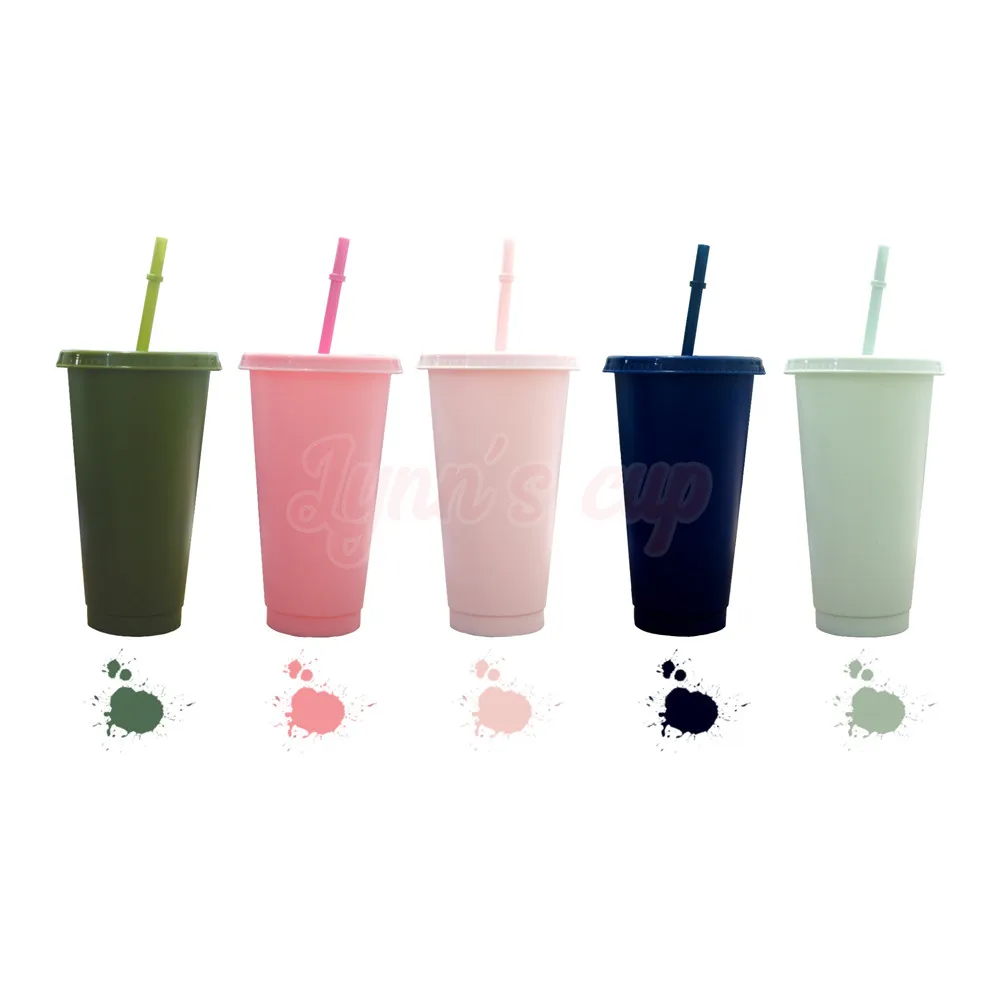 Набор пластиковых стаканчиков для холодных напитков с соломинкой и крышкой, 24 унции, 5 шт.