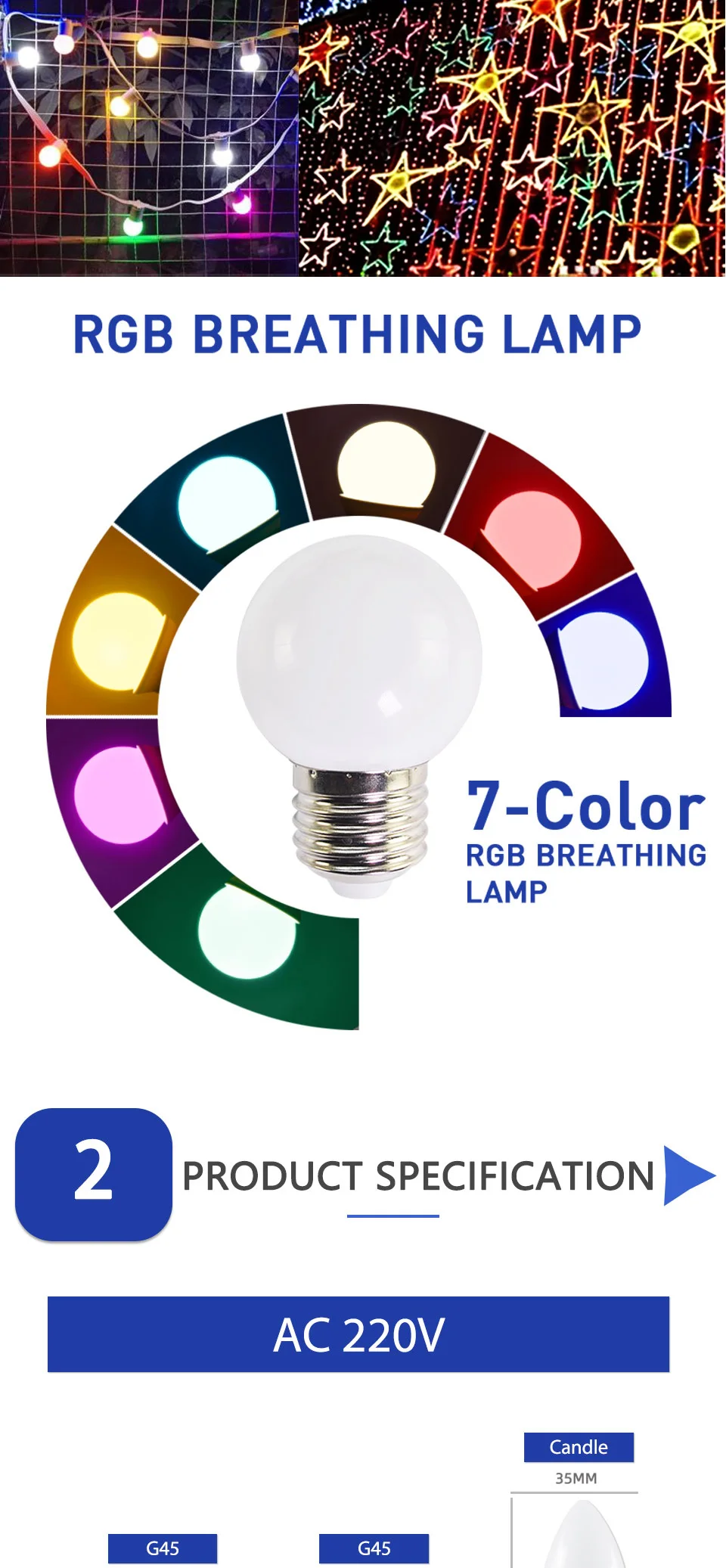 Светодиодная лампочка E27 E14 3 Вт 5 Вт 7 Вт Светодиодная лампа RGB A60 A50 G45 C35 светодиодная свесветильник цветная SMD 2835 220 В переменного тока 240 В