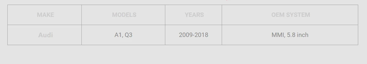 Integrated 3 in 1 module supports wireless CarPlay, USB Android Auto, USB mirroringUSB HD video and lossless music playback (APE, WAV, FLAC, MP3, WMA, etc.)Offer 2 CVBS video input (front & rear view camera)Support PDC (Parking Distance Control) and FPG (Flexible Parking Guidelines)Supply 12V power to backup and front cameraDisplay front view automatically after shifting from “R” gear, also support setting the durationAdjustable left/right driving layout on CarPlayOperate by OEM MMI controller & steering wheel buttonsSupport OEM and add on microphoneFurther software update via USBIntegrate CAN-bus reader for quick trouble shooting