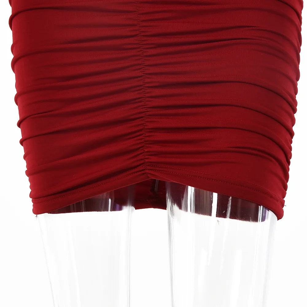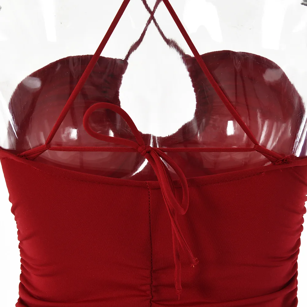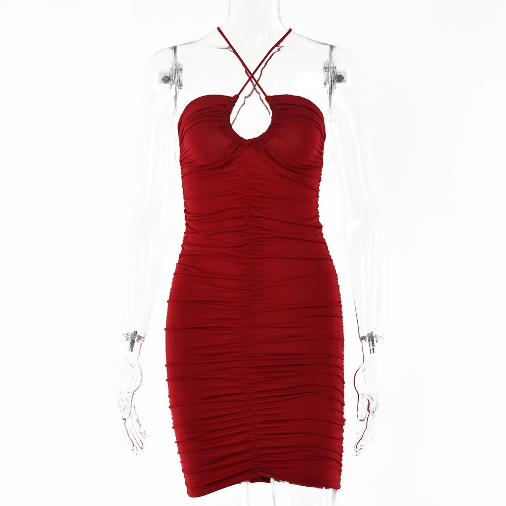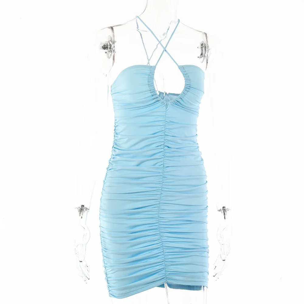 Летняя женская плиссированная полая облегающее мини платье с лямкой...