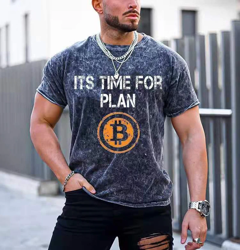 Мужская футболка цифровой валюты печати Биткоин с короткими рукавам...
