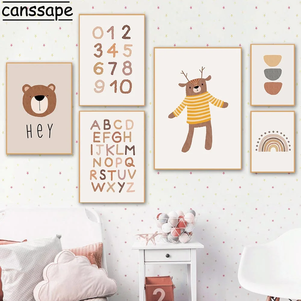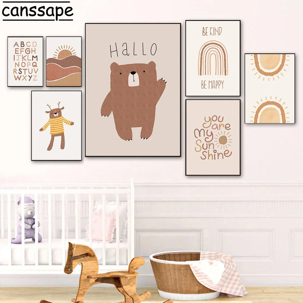 Картина по номерам на холсте, с изображением медведя в стиле бохо, Радужный солнечный свет, настенные картины для детской комнаты