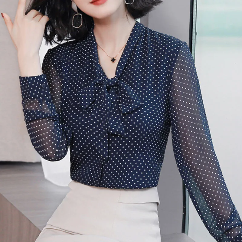Женские топы, рубашки, рубашка, шифоновая блузка, однотонные рубашки, элегантные женские топы и блузки, модная женская одежда в горошек, новинка 2022