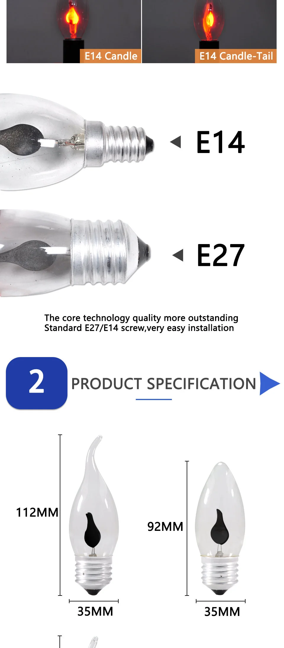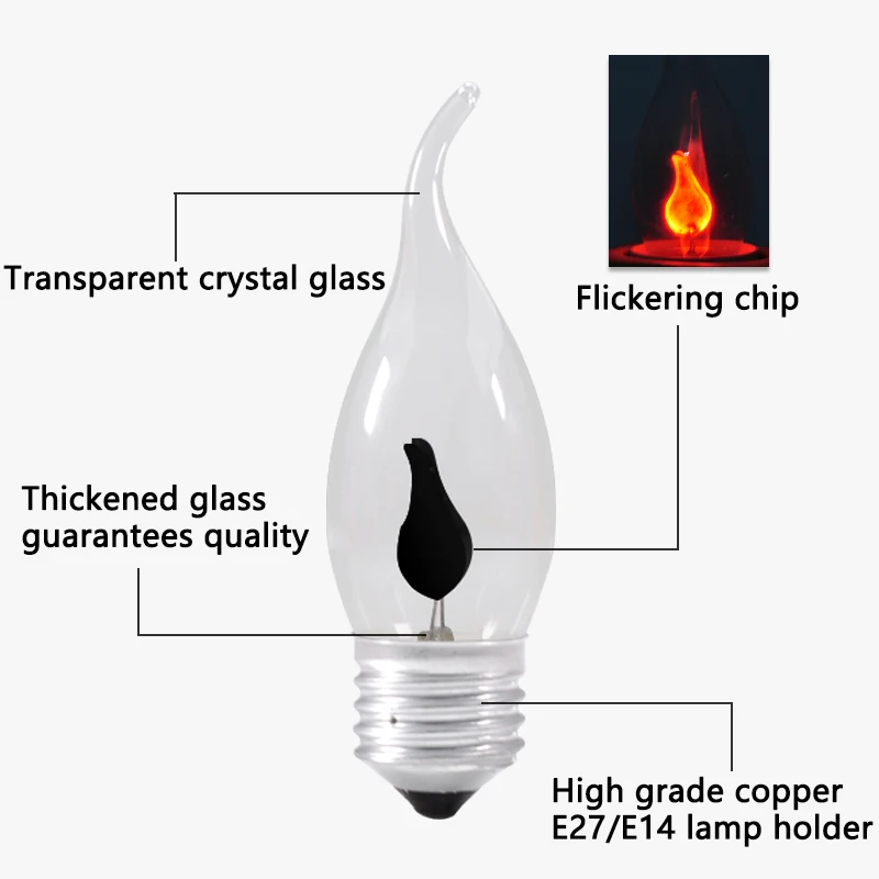 Светодиодная лампа E14 E27 Edison led лампачки со пламени светодиодные лампы в форме свечи светильник огонь светильник ing Винтаж 3 Вт AC220V 240V Хвост Ретро Декор энергосберегающая лампа
