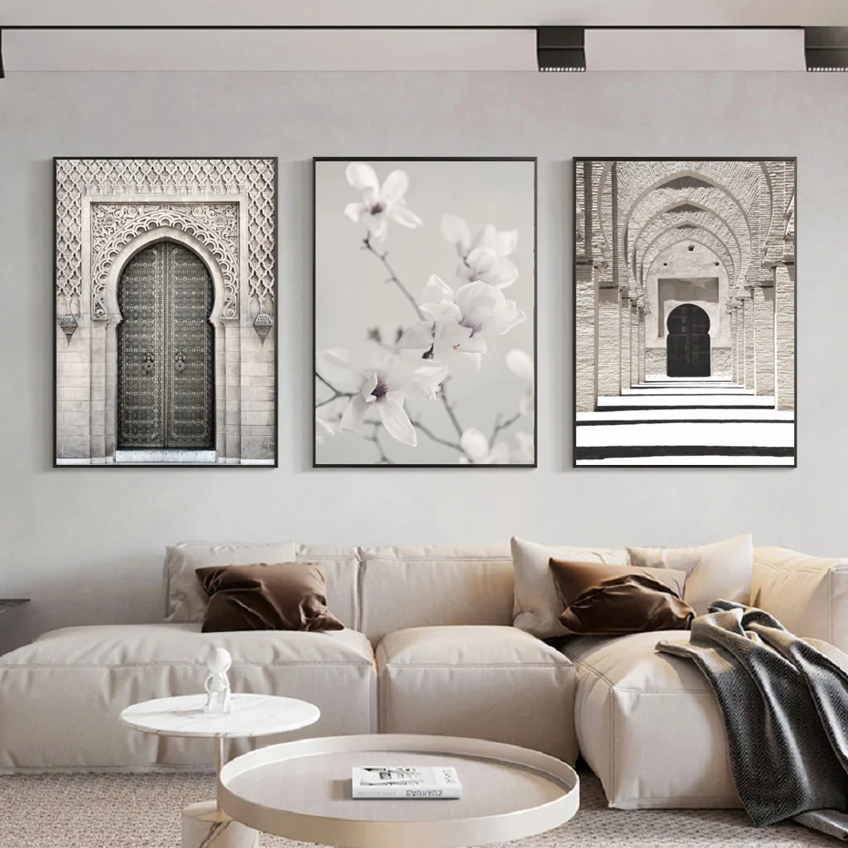 Минимализм скандинавский маленький свежий исламский марокканский архитектурный цветочный постер настенная печать для спальни гостиной домашний декор