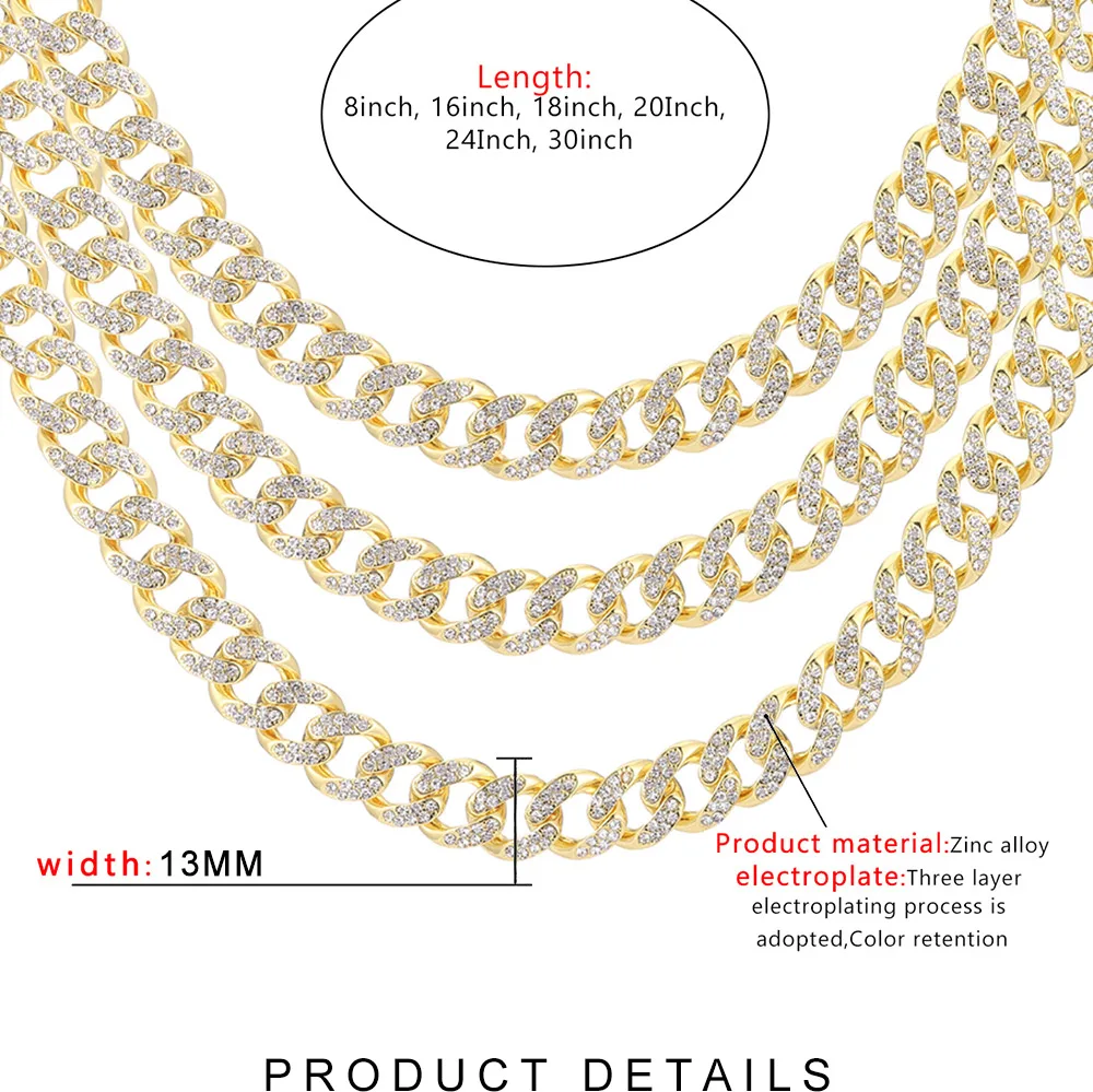 Кубинская цепочка в стиле хип-хоп, цепочка из кубинских звеньев, ожерелье для мужчин 13 мм, кубинский браслет-цепочка в Майами, популярная Золотая цепочка, украшения для женщин