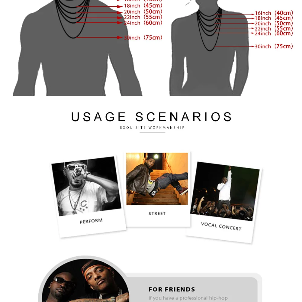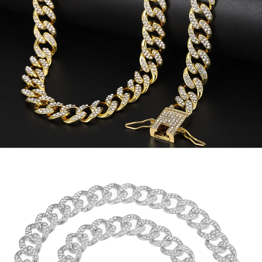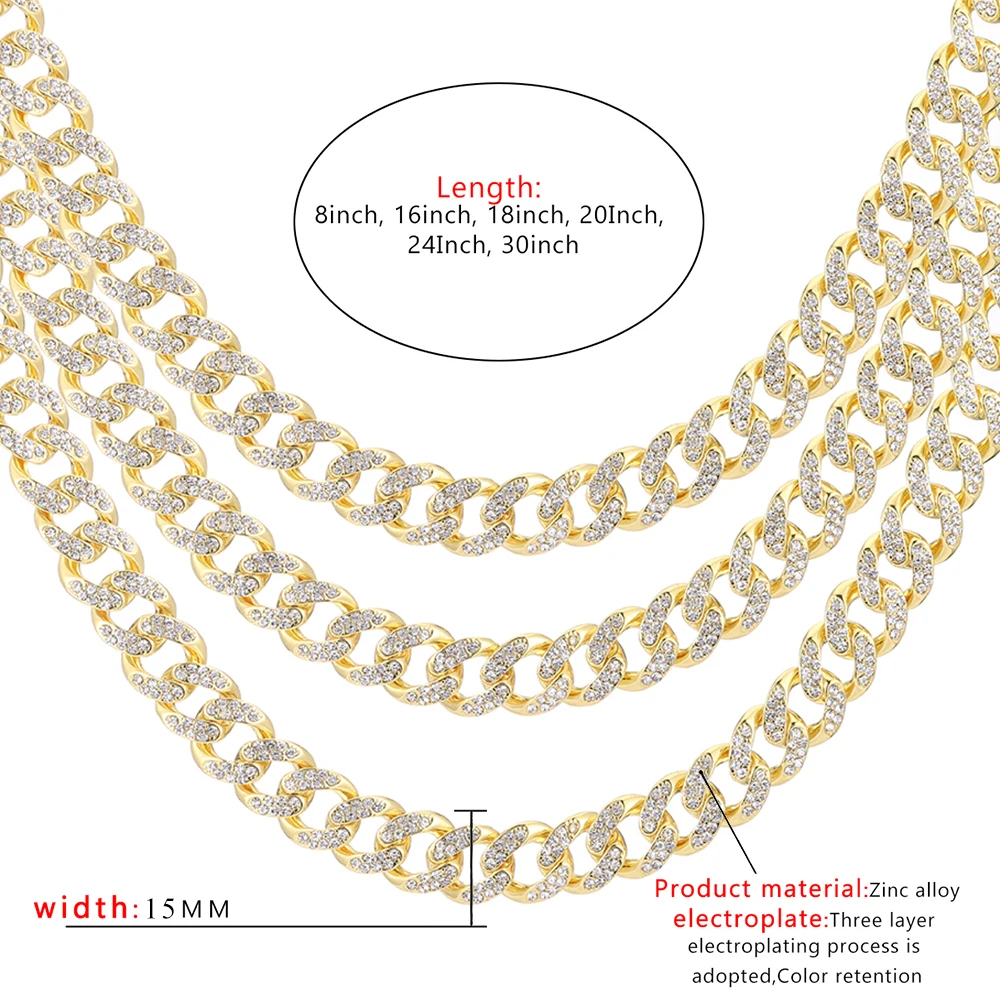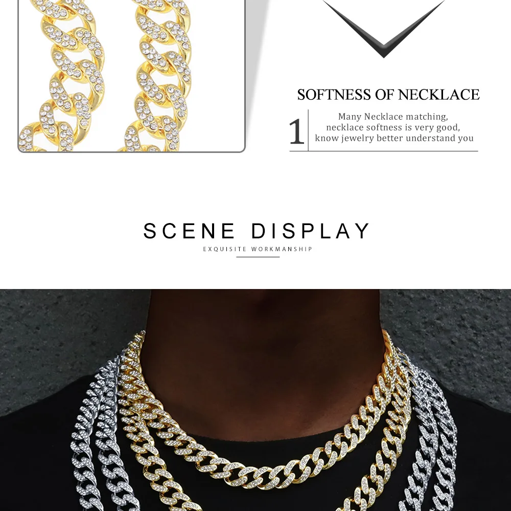 Стиль: Кубинская цепочка из сплава, ожерелье и браслетыРазмер: ширина 4 ммДлина ожерелья: 16 дюймов, 18 дюймов, 20 дюймов, 24 дюйма, 30 дюймовМатериал: цинковый сплав со Стразы