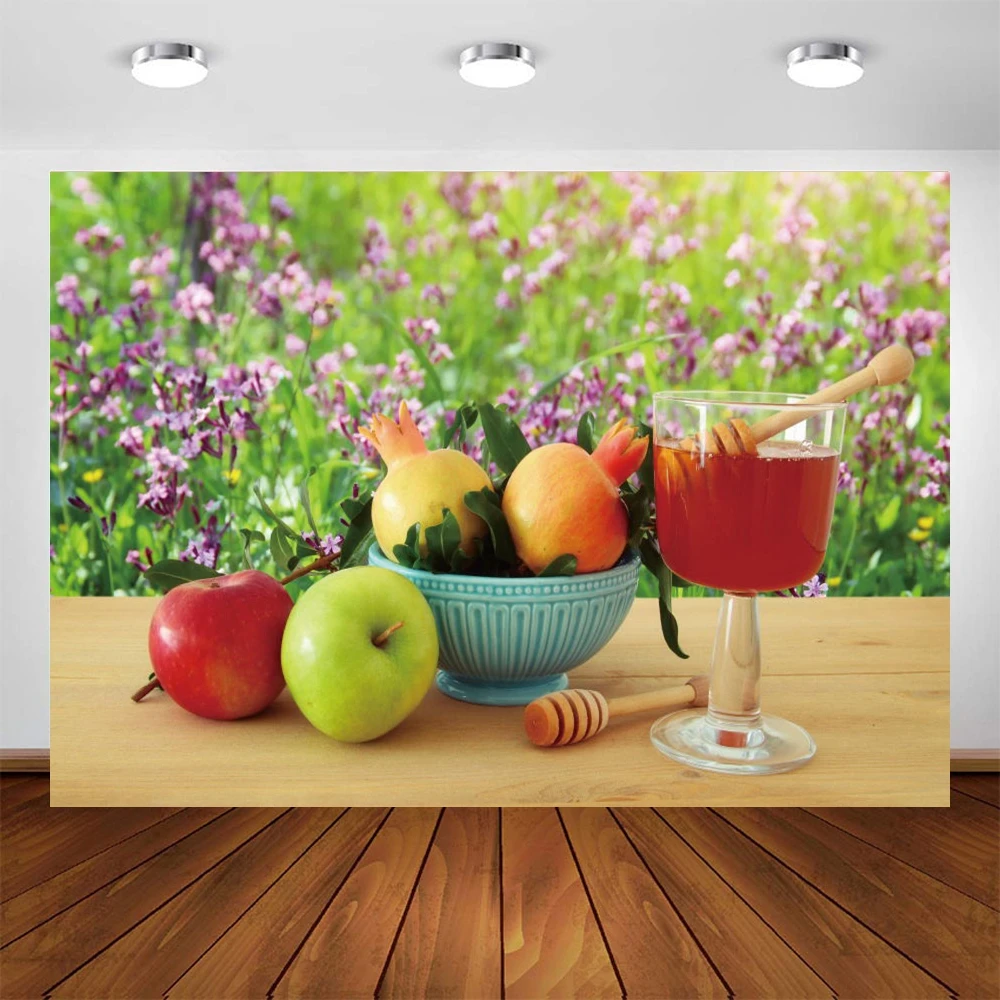Фотофон Rosh Hashanah с изображением еврейского новогоднего меда, граната, цветов, цветов, Виниловый фон для фотостудии