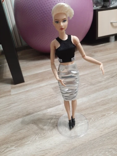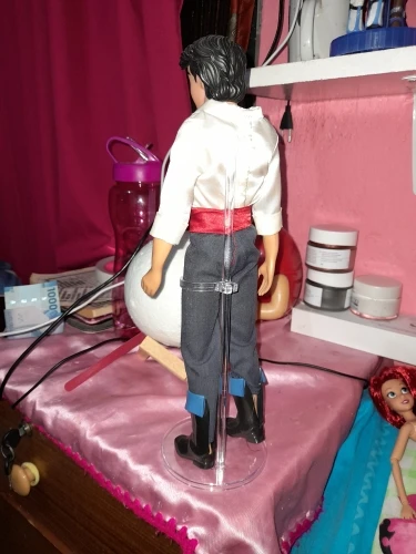Хорошие подставки, в реальности даже более основательные, чем выглядят на картинке. Так как заказывала много (20 шт), продавец не поскупился на обёртку пупыркой, всё пришло целое. Поставить можно практически любую куклу формата 1/6, но с пышными телами могут возникнуть проблемы. я сначала надела кольцо на талию куклы, а потом соединила со штырём подставки, так удобнее.