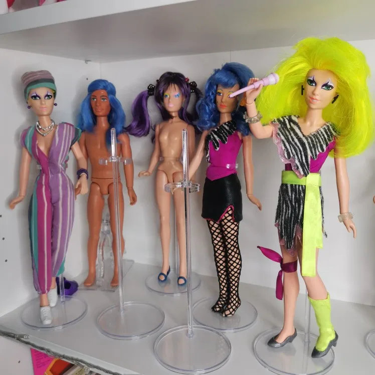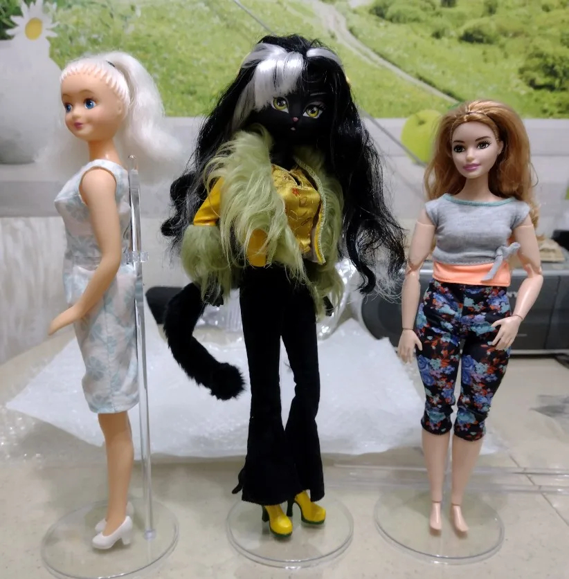 Отличные подставки, мне очень понравились. Высота стержня почти 30 см, за счёт чего могут подойти куклам выше стандарта Барби как Джем на фото. Единственное, что держатель тоже из пластика и не гнётся, есть возможность сломать, поэтому нужно быть осторожными с подставками.