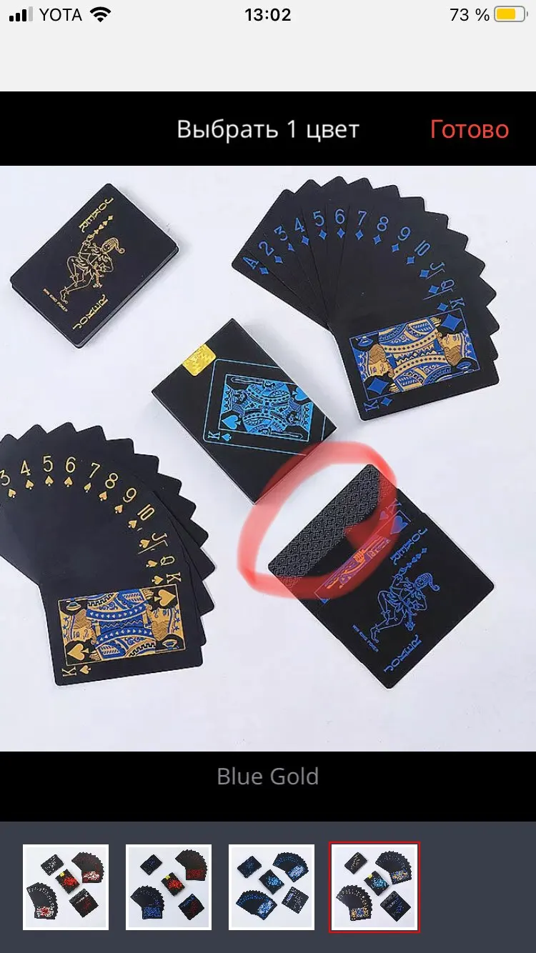 Отправка товара в течении 2-х дней. Доставка до Новосибирска (Бердска) - 16 дней. Упаковано в оригинальную коробочку для карт, обёрнутую плёнкой + почтовый пакетик. Выбирала продавца исключительно по рейтингу. Отличные звёзды, доставка, общение. Все на уровне. Но, увы, в меню описания товара неприятная оплошность. У карт не оказалось рубашек. На картинках все есть, по факту голый чёрный пластик. 5 звёзд человеку за порядочность. Пришлось открыть спор, попросить возврат. Через 10 минут был одобрен. Хотела другу подарить в подарок. Не вышло… Обидно весьма. Карты без рубашек - это как так-то??? Цена ведь не как за картонные обычные 36 карт, а за полноценную пластиковую колоду, мне показалась вполне обоснованной. Не дорисовали, в общем. Продавец извинился сразу же, все принял, сказал что будет лучше работать с товаром. Поэтому, уточняйте при заказе такие вещи. Спасибо за обратную связь, в любом случае.