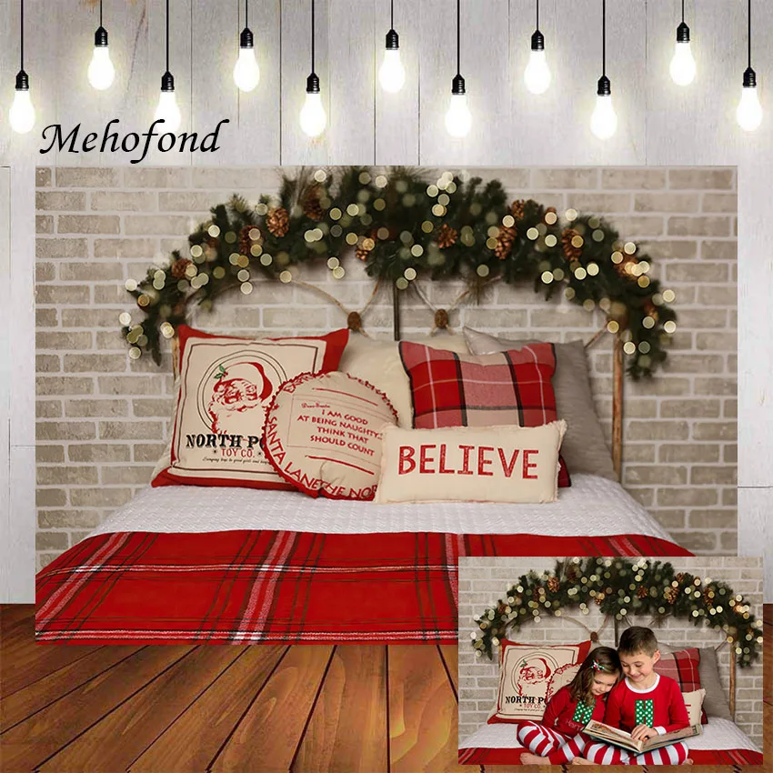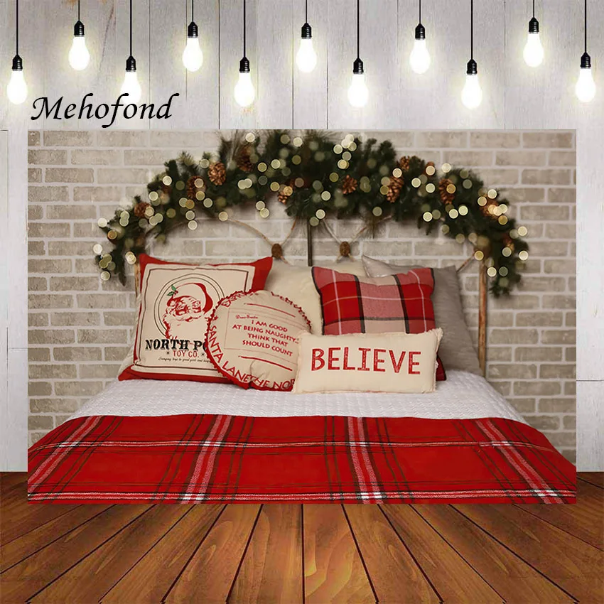 Рождественский фон Mehofond с изголовьем кровати кирпичной стеной для фотосъемки праздничный семейный фон для новорожденных детей портретный фон для фотостудии
