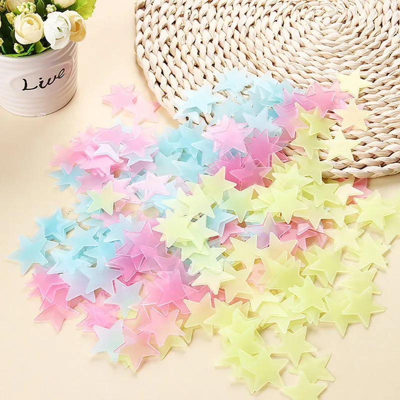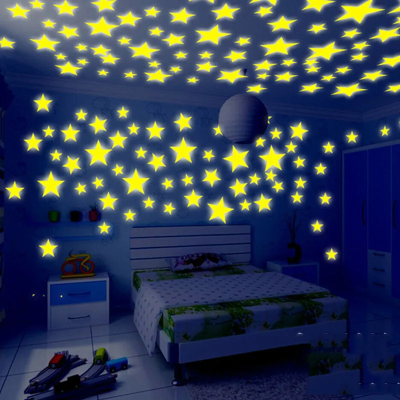 Светящиеся звезды, настенные Стикеры для детской комнаты, детской комнаты, домашнее украшение, настенные наклейки, зеркальные потолочные светильники для спальни, 100 шт.