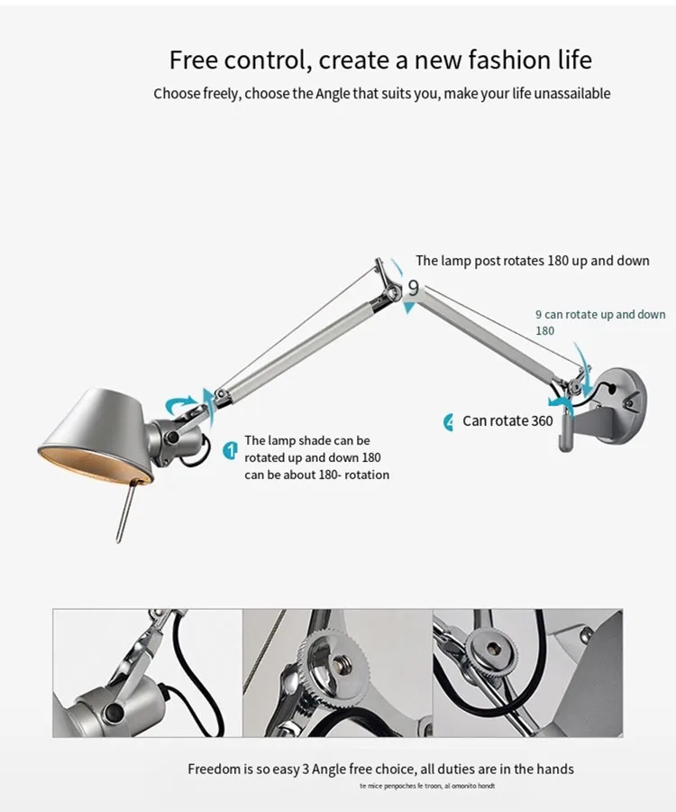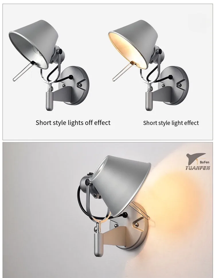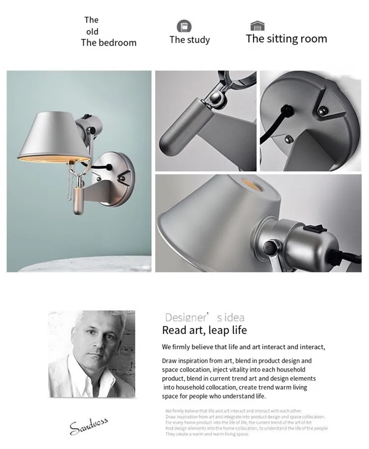 Настенный светильник в скандинавском стиле, для спальни, спальни, кабинета, офиса, вращающийся, складной, ретро, для чтения, настенный светильник