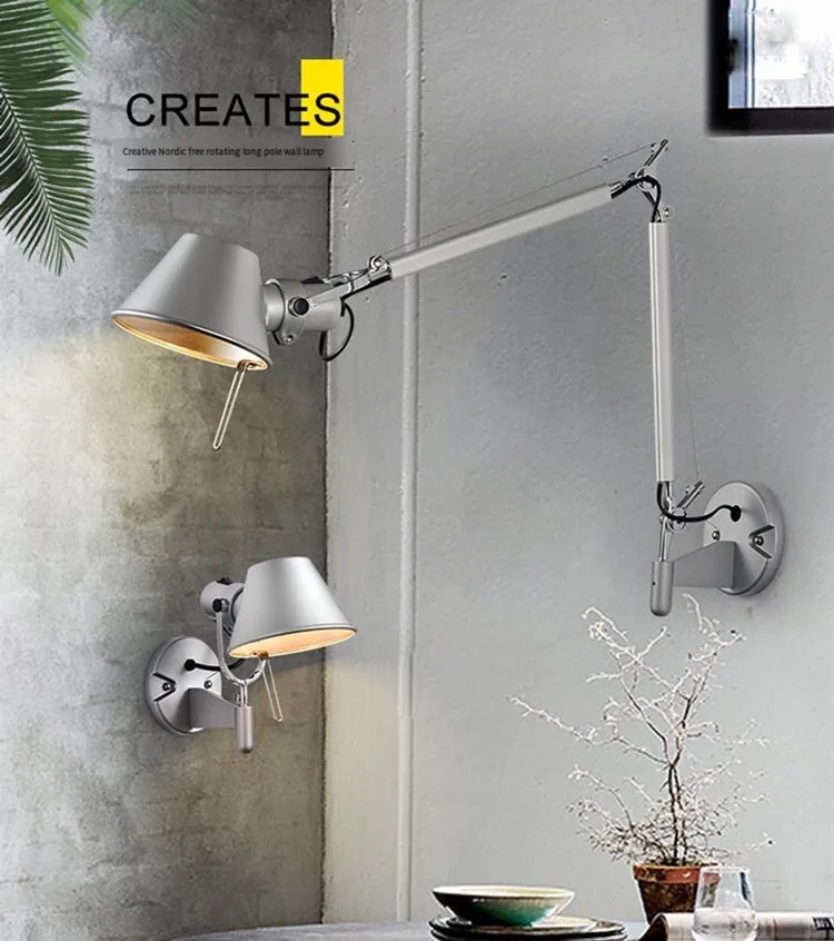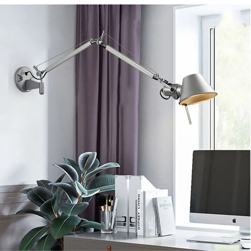 Настенный светильник в скандинавском стиле для спальни, прикроватного кабинета, офиса, вращающийся телескопический складной ретро-светильник для чтения, настенный светильник