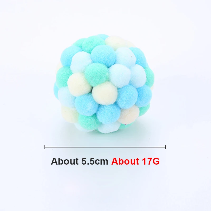 2. Разноцветные плюшевые шарики с колокольчиками, привлекают внимание кошек.