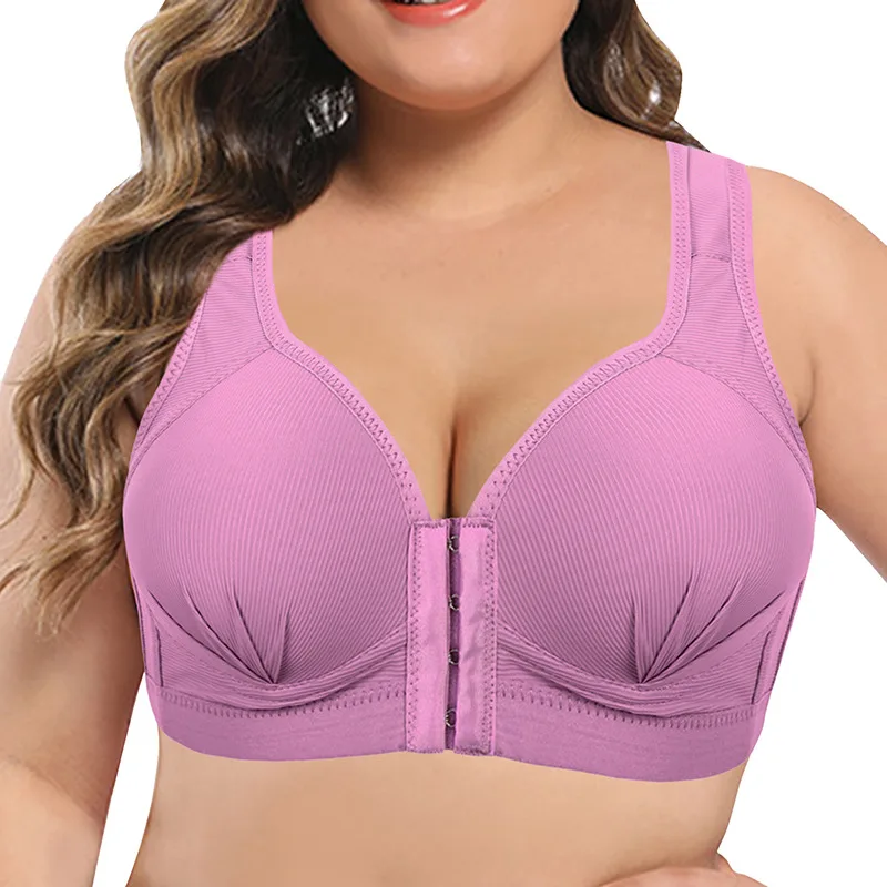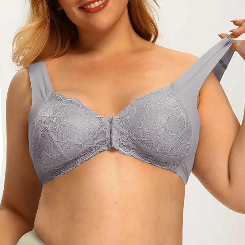 Бюстгальтеры размера плюс, женское Спортивное кружевное нижнее белье без стальных колец, удобный бюстгальтер для йоги на груди с застежкой спереди