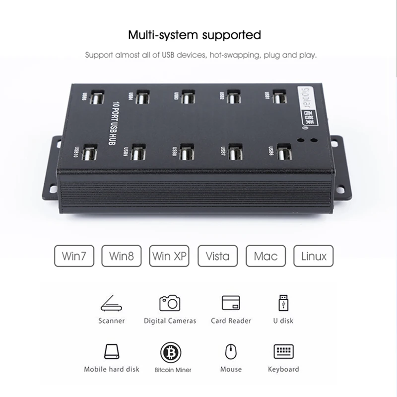 1.A-300 портов промышленного класса 10 2.0 usb-хаб, поддержка подключения устройств 10 шт. одновременно, подключение мобильного жесткого диска, мобильный телефон flash, расширение порта USB. Синхронизация данных скорость передачи данных до 480 Мбит/с.