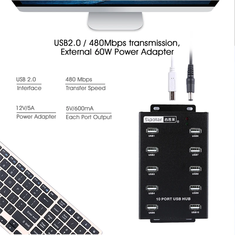 USB-концентратор Sipolar, 10 портов, 2,0 мА, USB 2,0