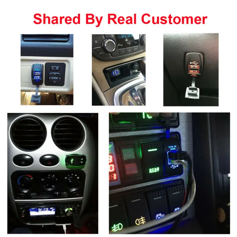 * 100% новый и высокое качество* Уникальный дизайн двойного USB также может удовлетворить потребности различного электронного оборудования.* Изготовлен из огнеупорных материалов, стойких к высоким температурам и коррозии, прочный и прочный, не легко искажать, водонепроницаемый и пыленепроницаемый.* Синий светодиодный индикатор делает зарядку более быстрой и безопасной.* Провод с низким сопротивлением, сила проводимости электрического тока сильная, безопасная и стабильная, и зарядка плавно.* Встроенный уникальный дизайн Smart chip может предотвратить текущее повреждение ваших электронных продуктов для защиты ваших активов.* Легко помещается и снимается, Пылезащитная резина.* Особенно подходит для ipod, ipad, iphone, Samsung, также может заряжать смартфон, Mp3, mp4 и другие цифровые устройства USB.Спецификация:* Тип: автомобильное двойное USB гнездо* Материал: пластик* Цвет изделия: синий* Рабочее напряжение: 12-24 В* Количество USB: 2* Выход USB: 5 В постоянного тока 3.1A* Размер: как показано на картинке* 2 штыревое соединение- ( 1, 1 отрицательный)* Водонепроницаемость IP66 и защита от пыли