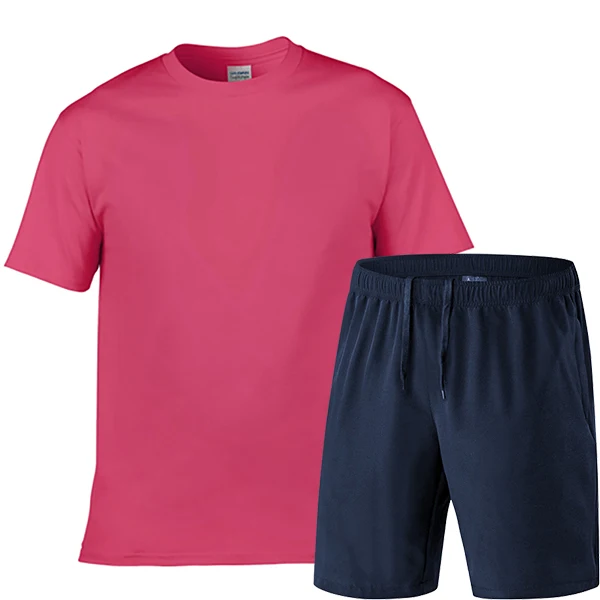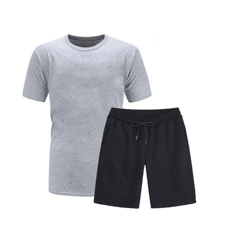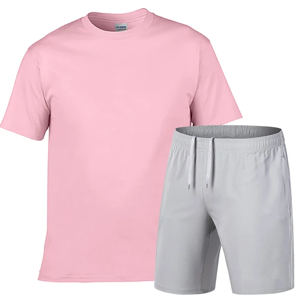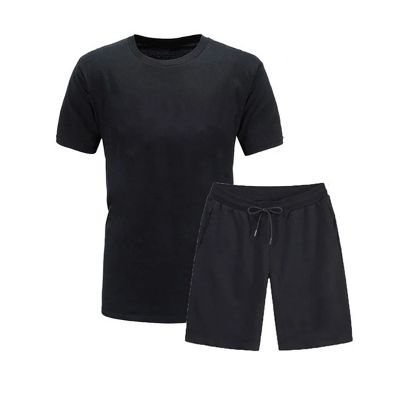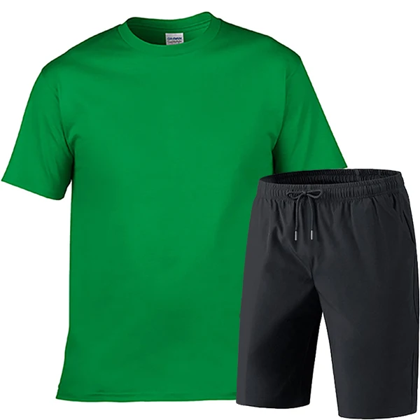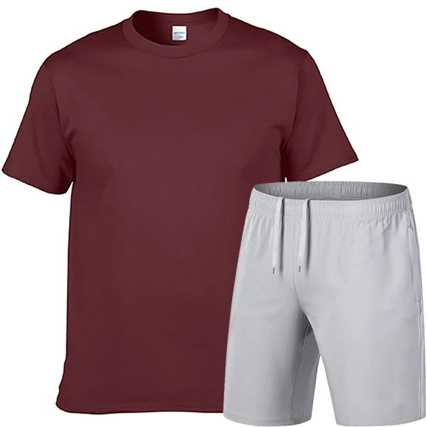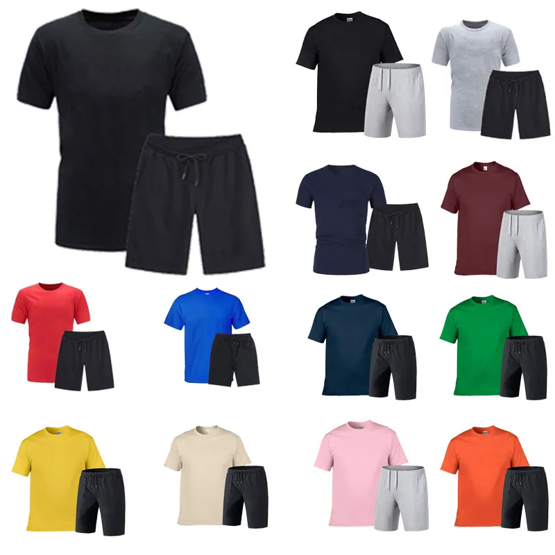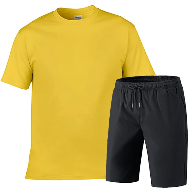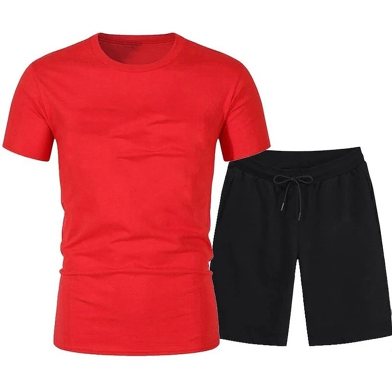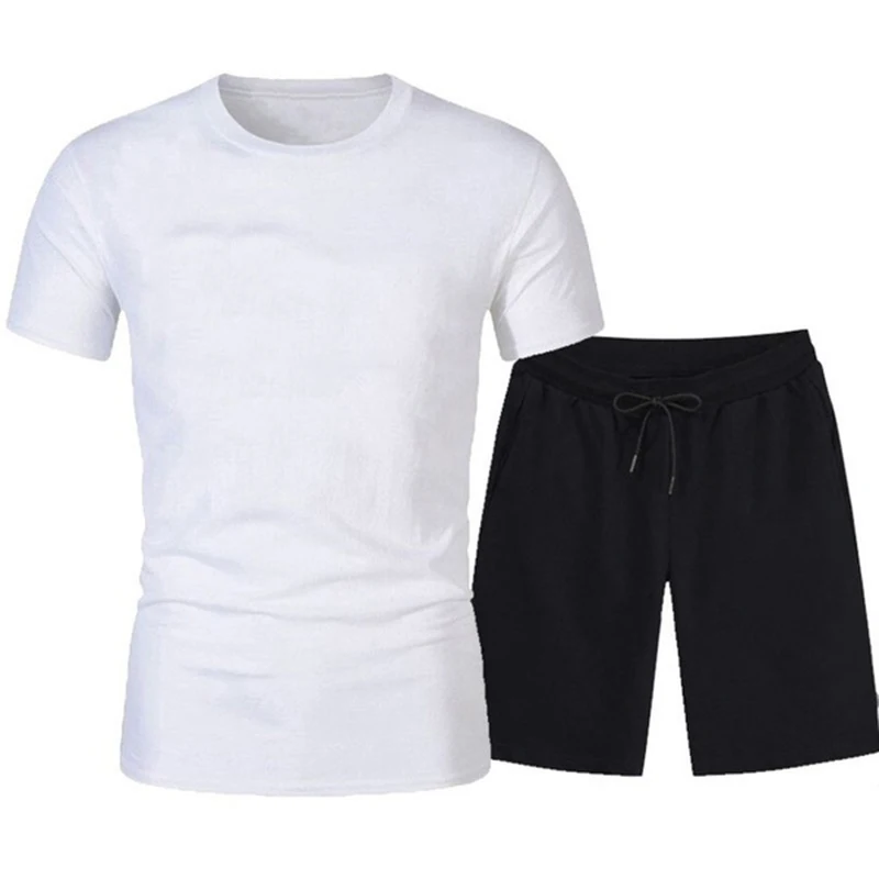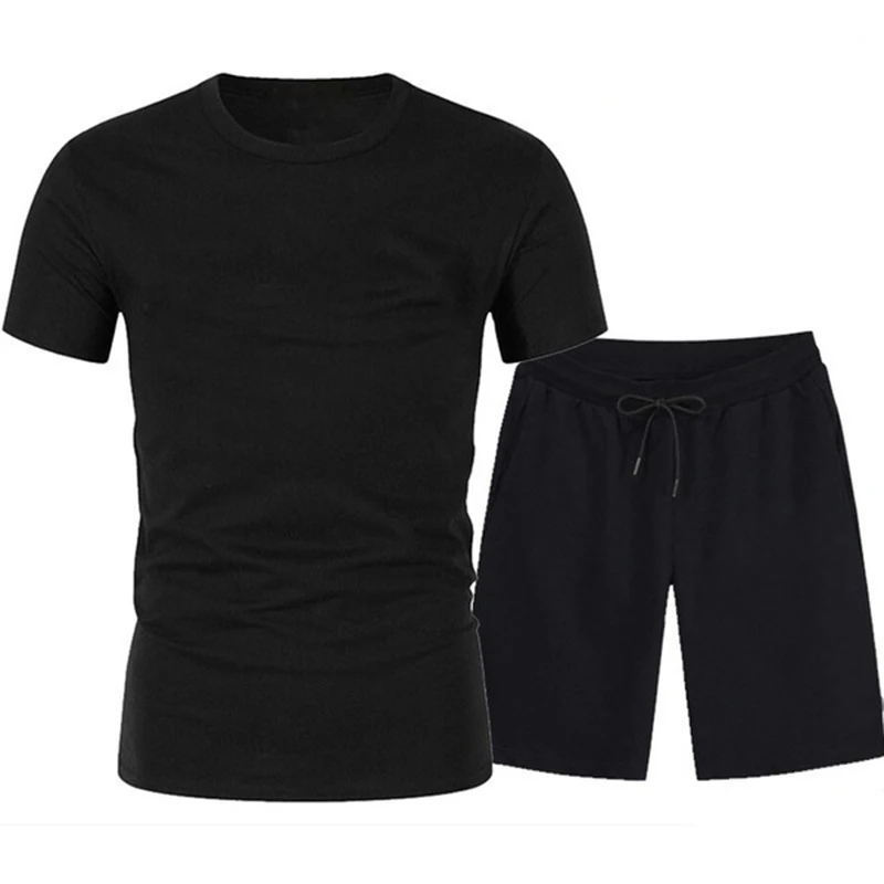 Спортивный костюм мужской из 2 предметов, хлопковая футболка с коротким рукавом, однотонный, Повседневный, 2021