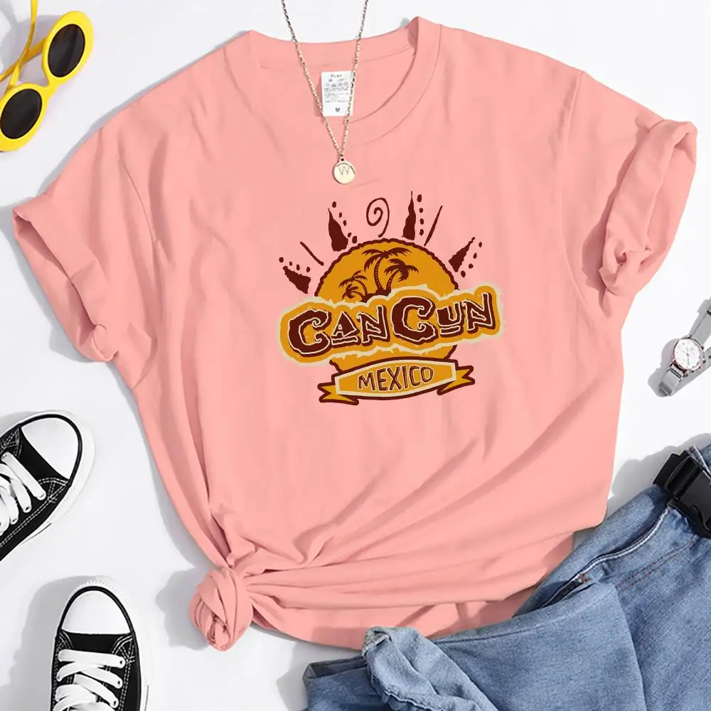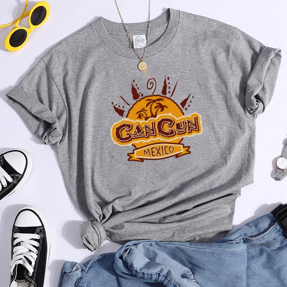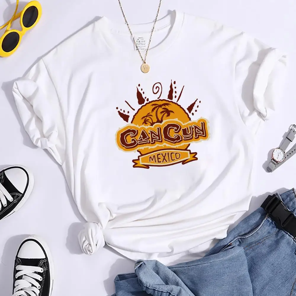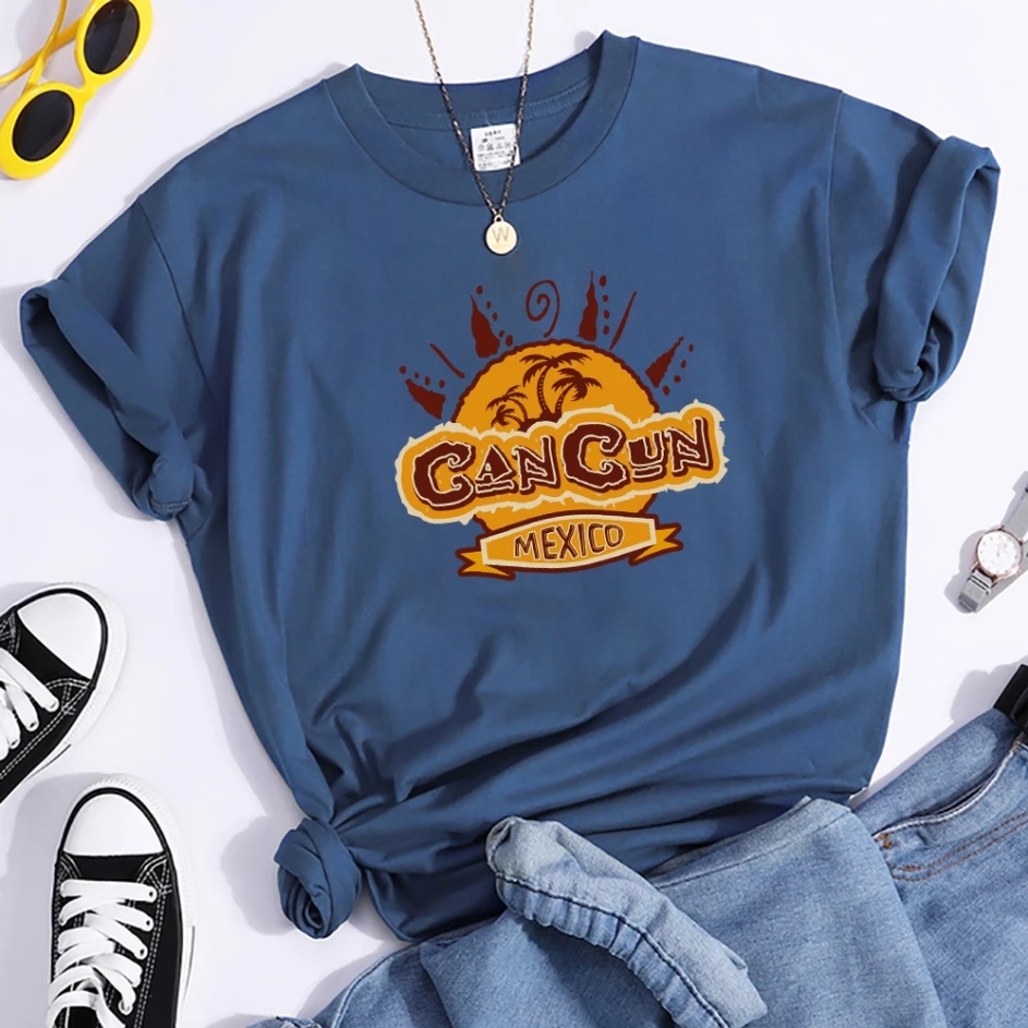 Женская футболка Caugun с мексиканским принтом, простые футболки с круглым вырезом, крутая дышащая футболка, летние свободные хлопковые женские футболки