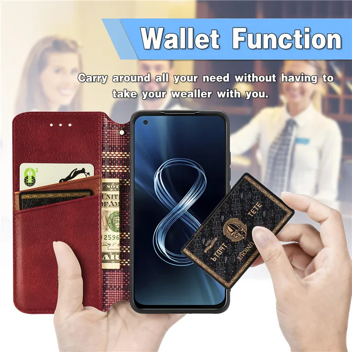 Кожаный чехол для Asus Zenfone 8, откидной текстурный Чехол-бумажник Zenfone 8 Mini, роскошный Магнитный чехол-книжка для карт Zenfone 8 ZS590KS, чехол